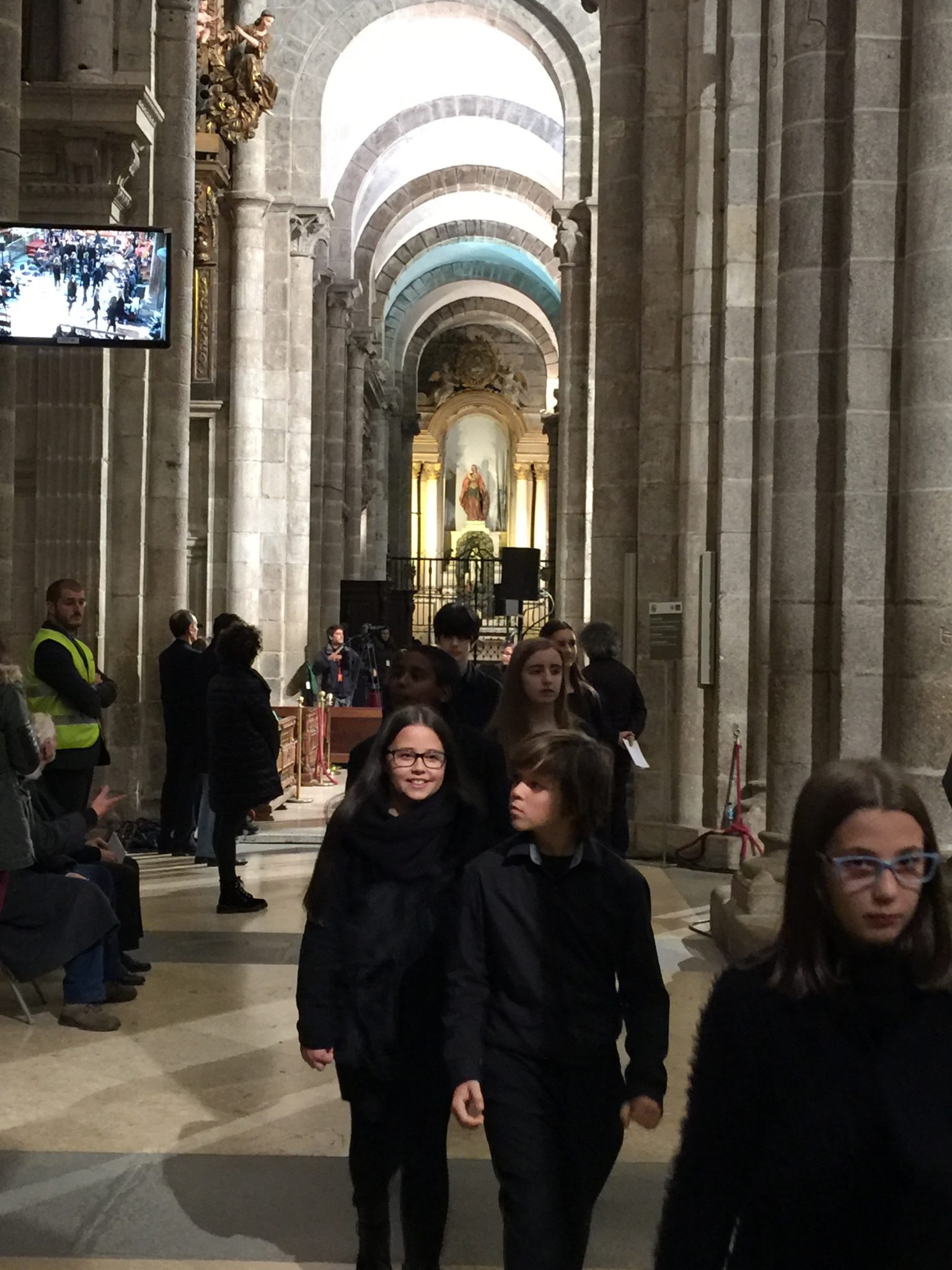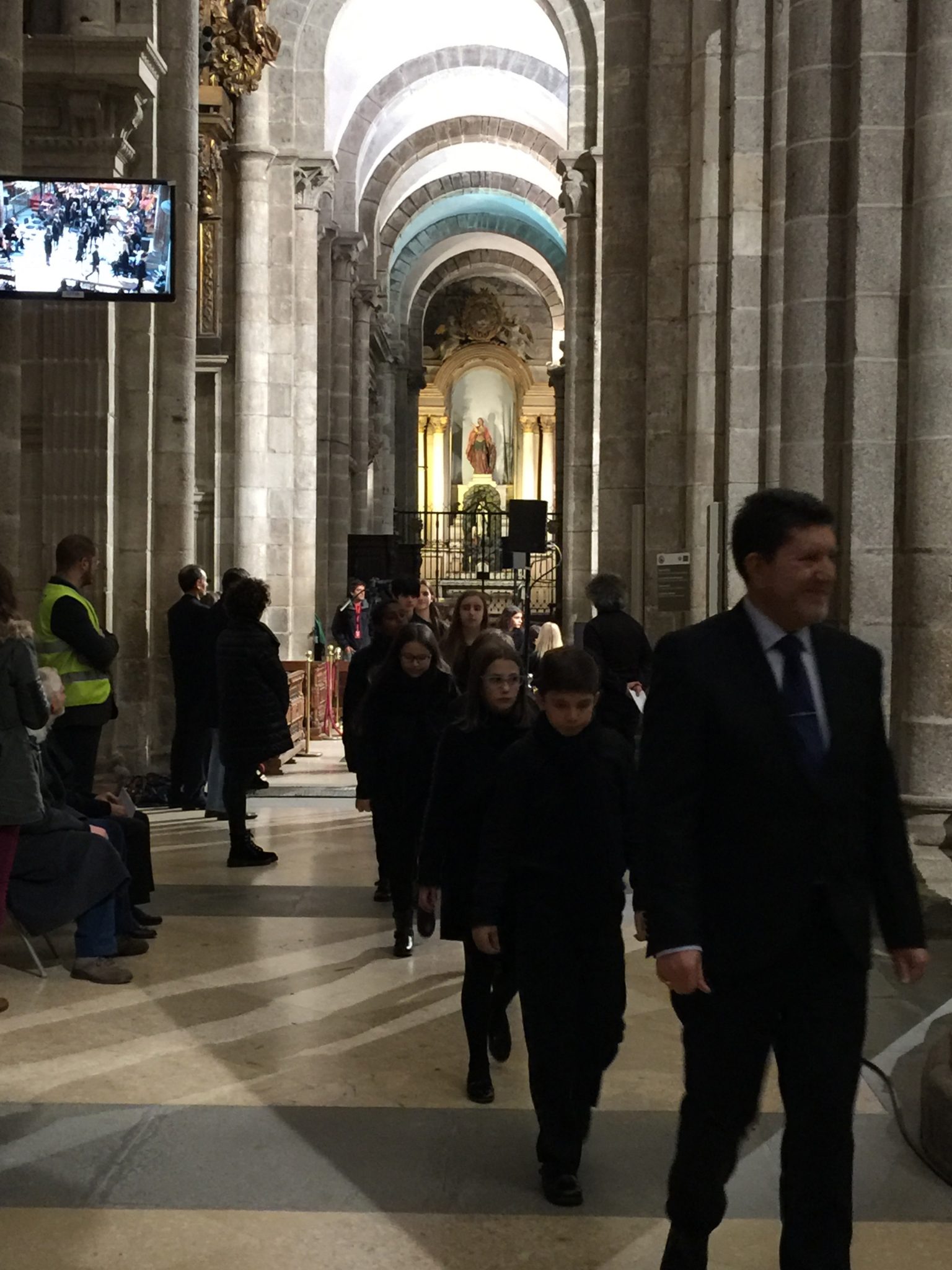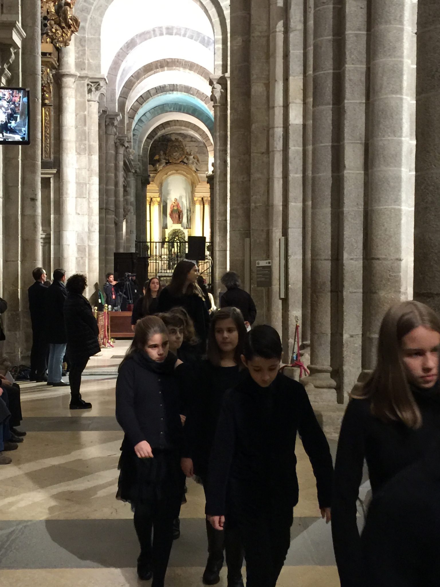 Y llegó la semana del concierto, así que el lunes 21 y martes 22, una vez que la Catedral de Santiago se cerraba al culto y las visitas, el equipo de producción de PXC Producción e xestión cultural, lo preparaba todo para poder ensayar el concierto del día 23. A pesar de la horas intempestivas, nuestros pequeños se comportaron como verdaderos profesionales y no dejaban de maravillarse de poder vocalizar en la capilla del Pilar y de poder ensayar con grandes músicos en un entorno privilegiado.