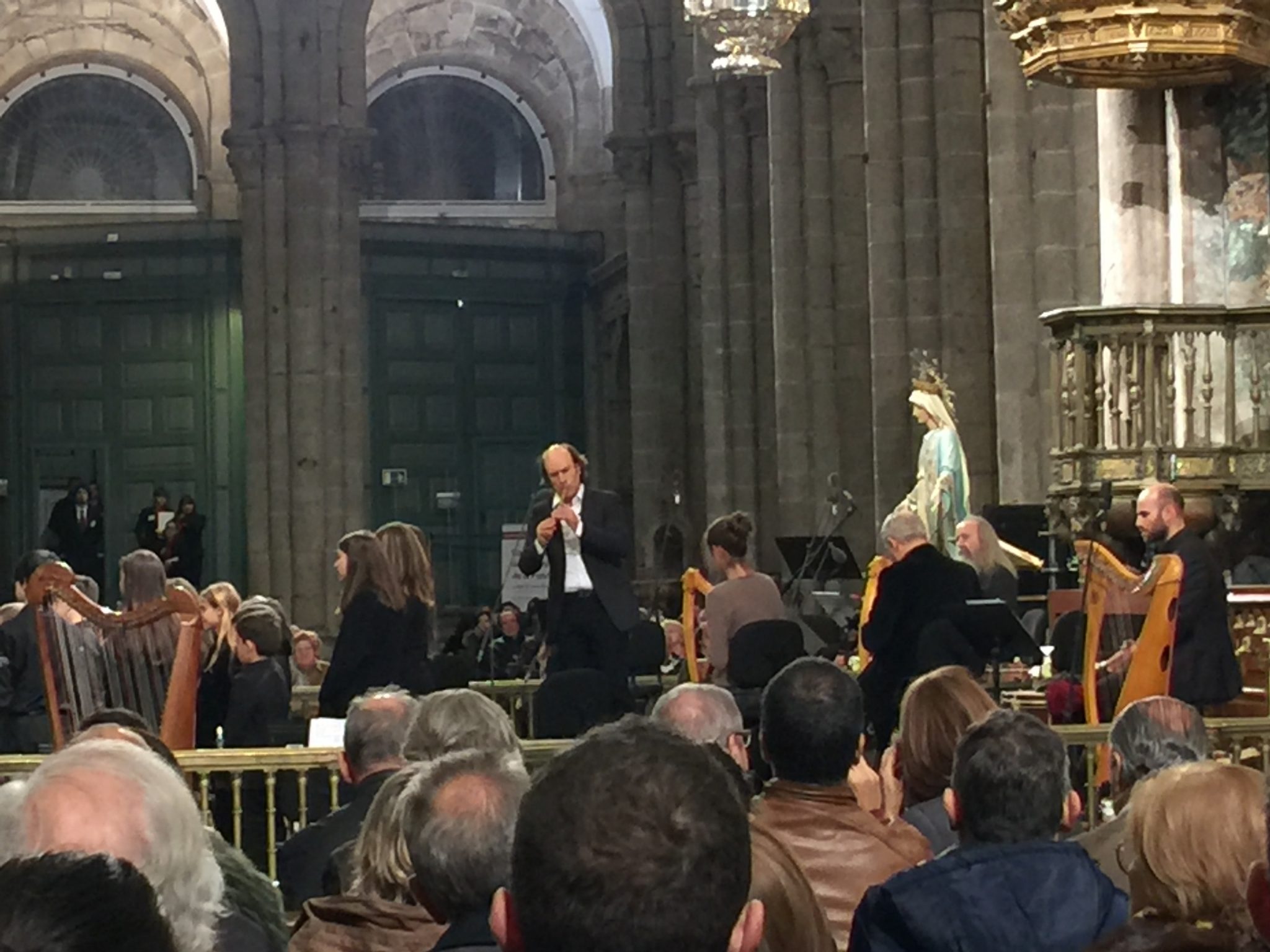 Desde que Carlos Núñez eligió a nuestros #pequeCantabile para participar en el concierto del 50 aniversario de la Fundación Barrié, nuestro director, Pablo Carballido, trabajó con ellos las tres piezas con las que intervendrían en el concierto, dos obras del Codex Calixtinus,  “Congaudeant catholici”,   la única obra conocida para 3 voces en todo el siglo XII y el himno de los peregrinos de Santiago “Dum pater familias”; y una cantiga del Rey Alfonso X el sabio “Rosa das rosas”.