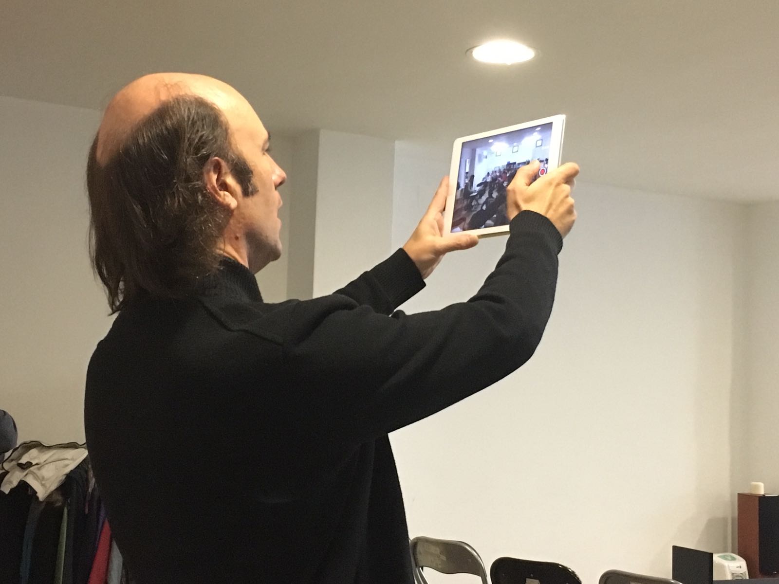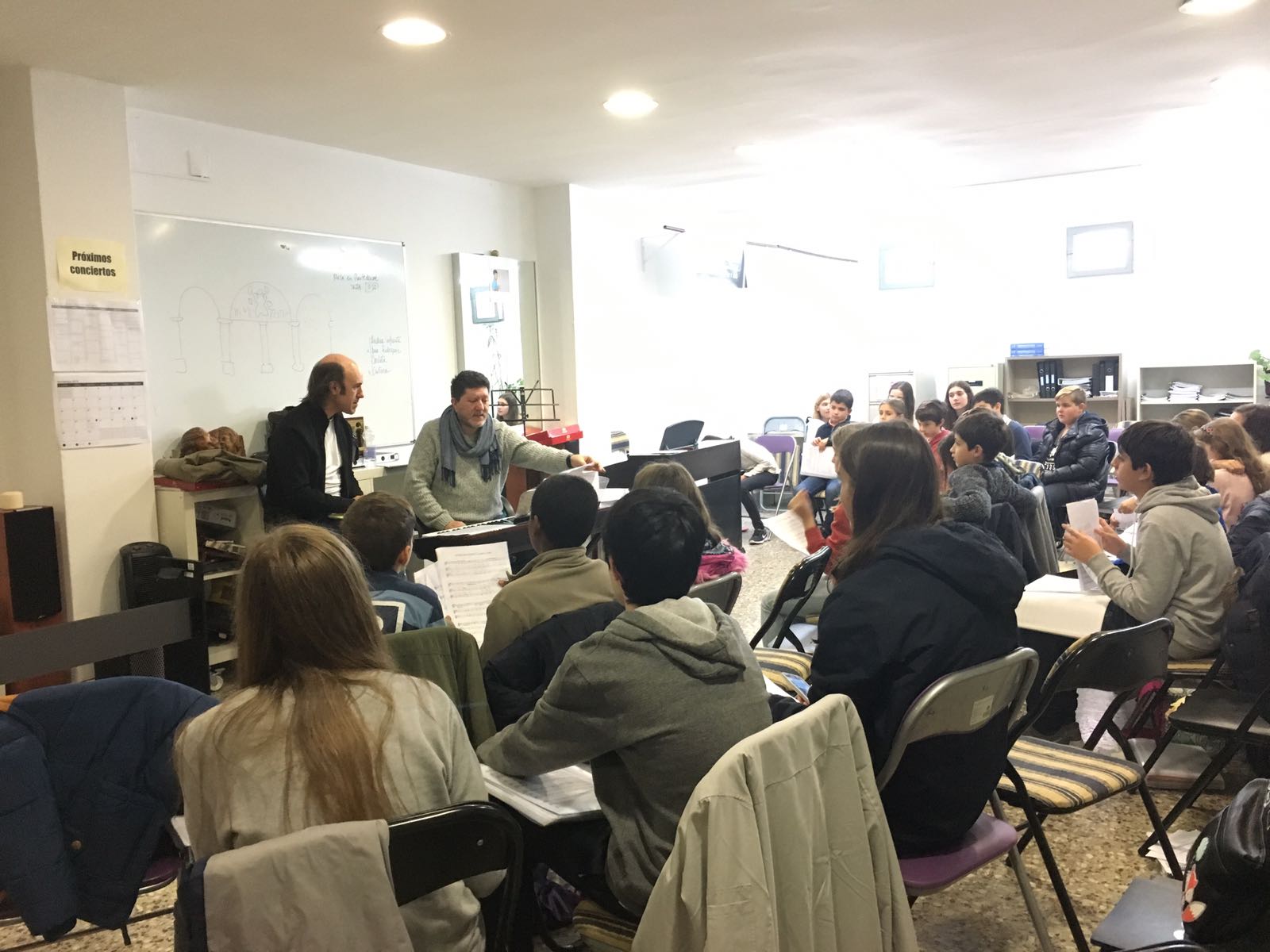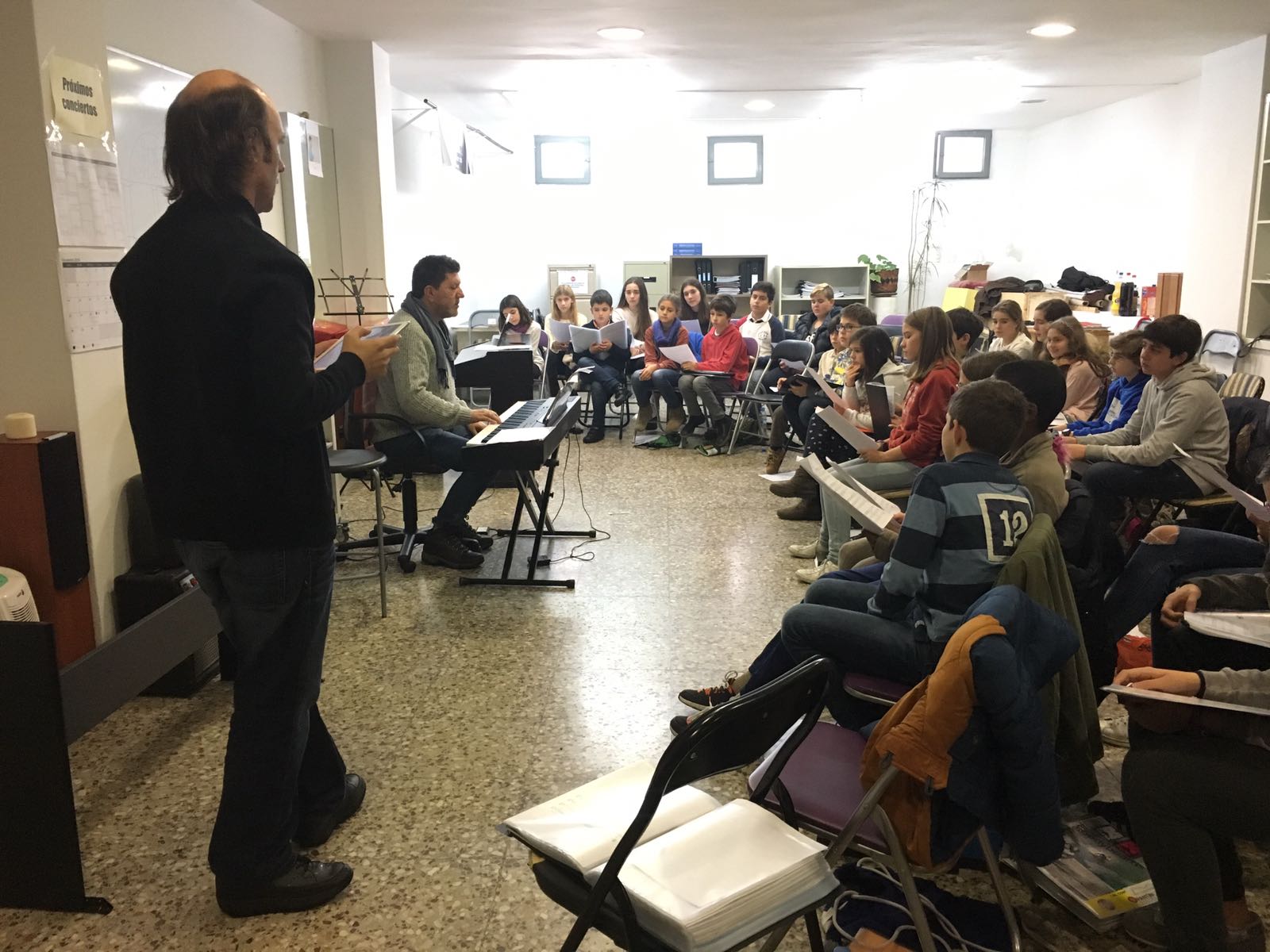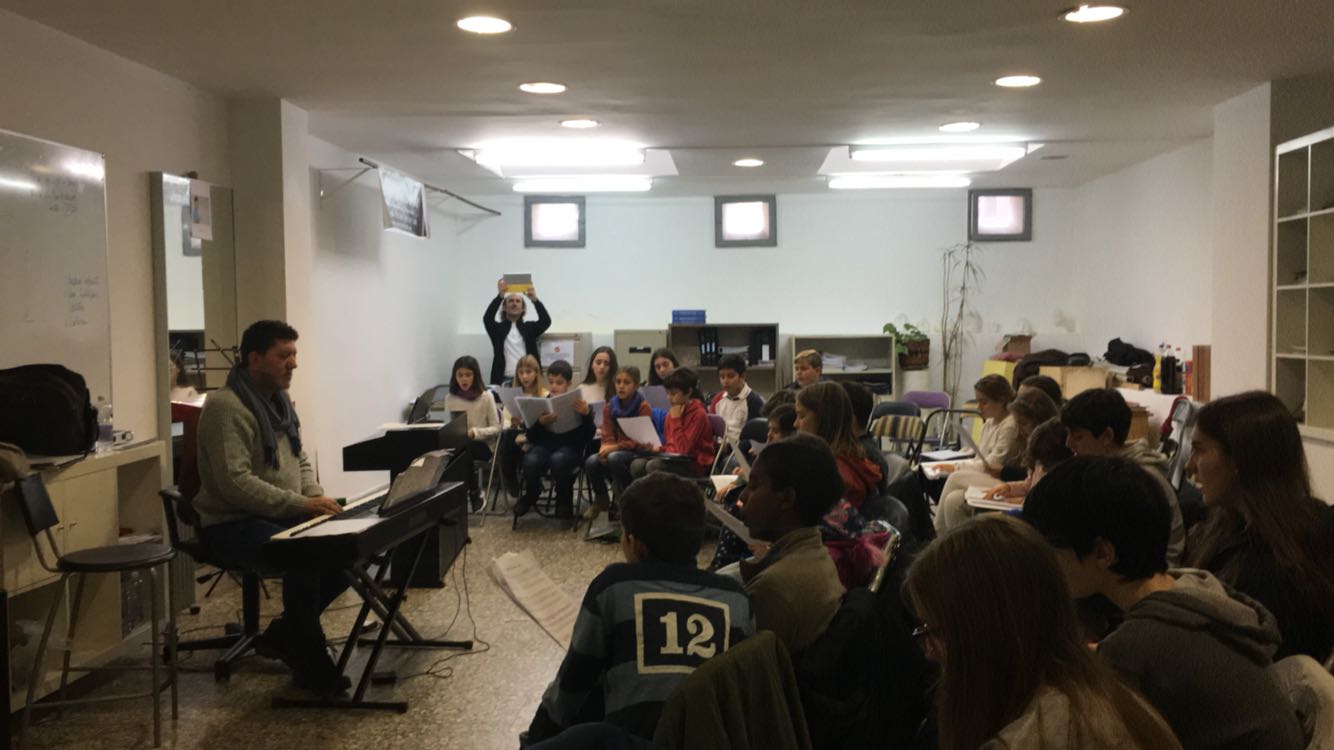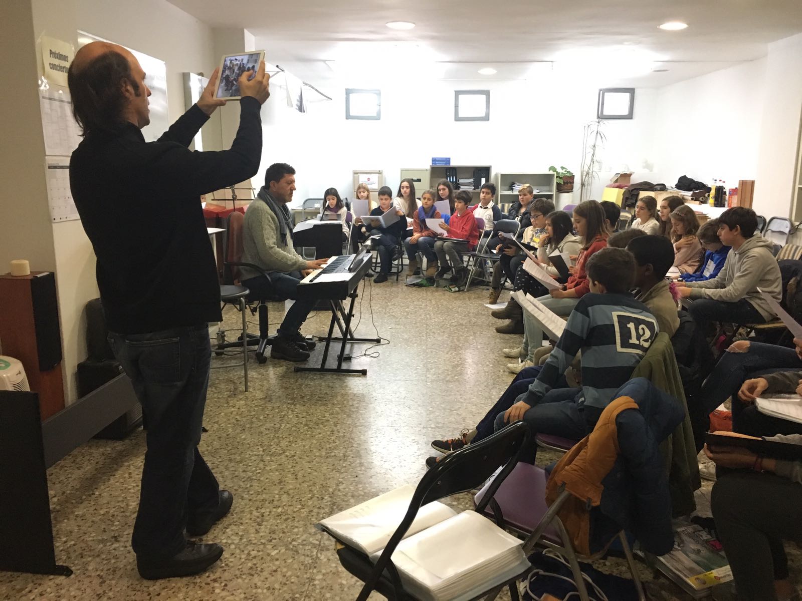 A la semana siguiente volvió de nuevo a nuestro local para ver cómo avanzaban con la preparación de las piezas que le había enviado a Pablo Carballido y se quedó de nuevo encandilado con nuestros  coralistas más jóvenes.