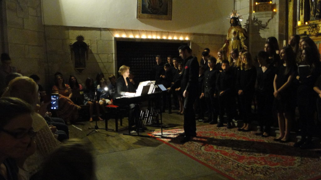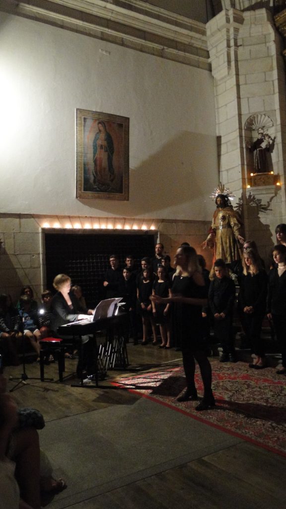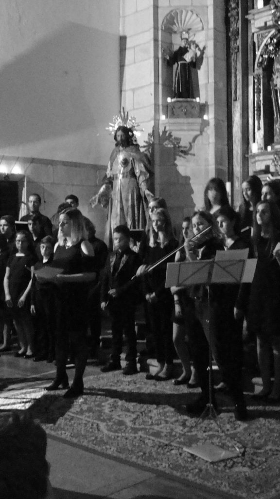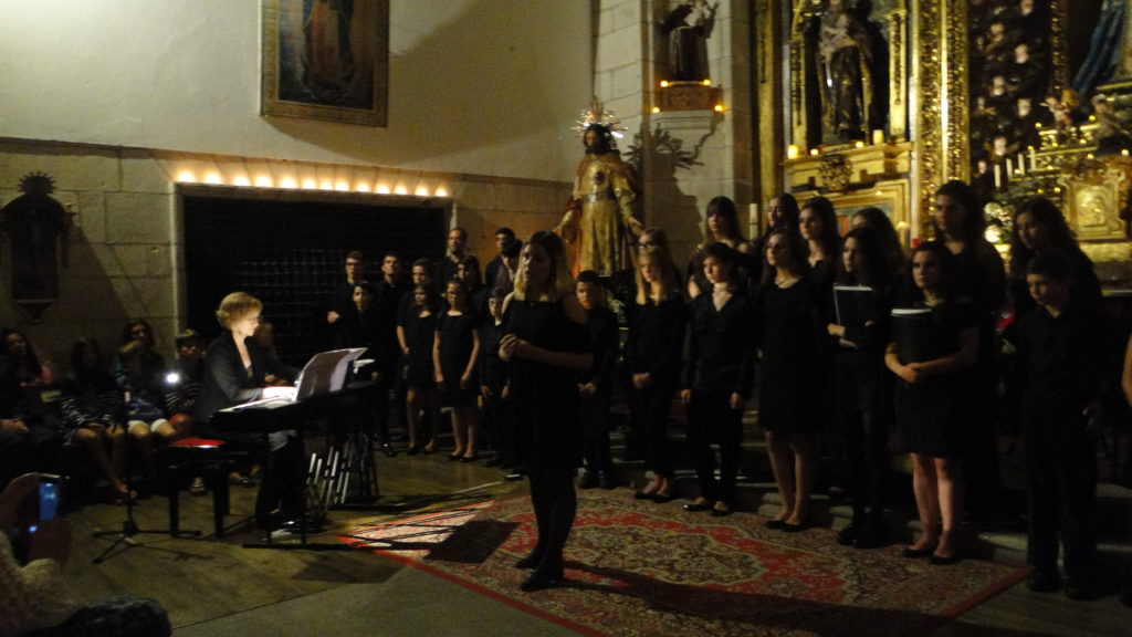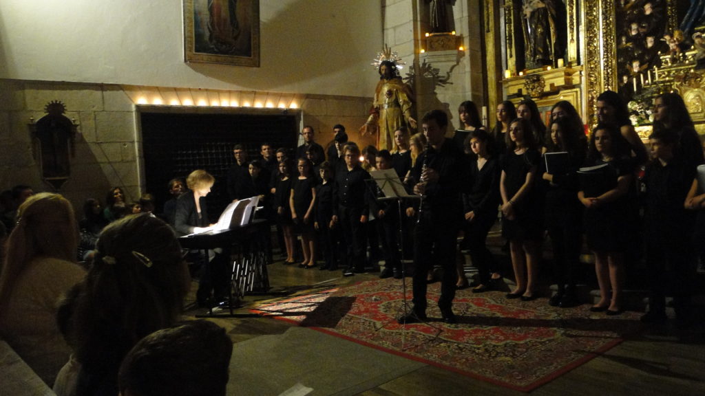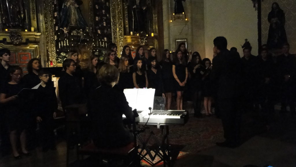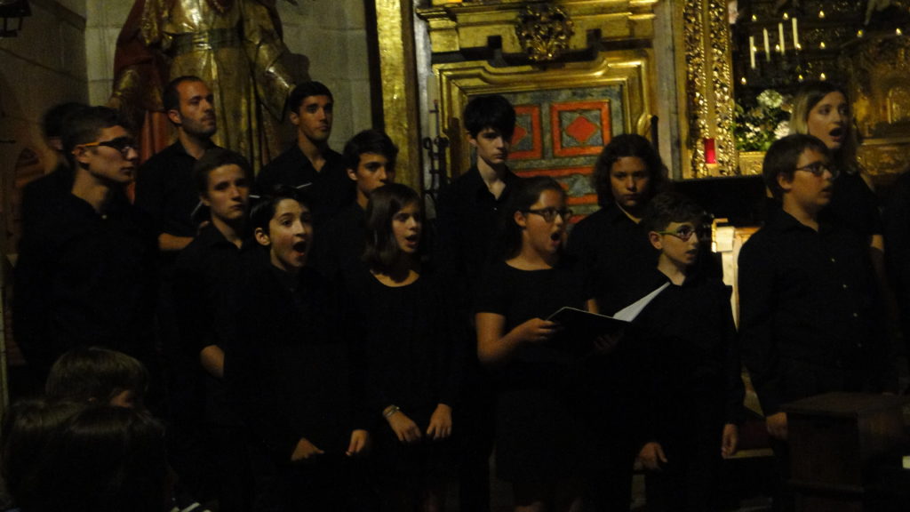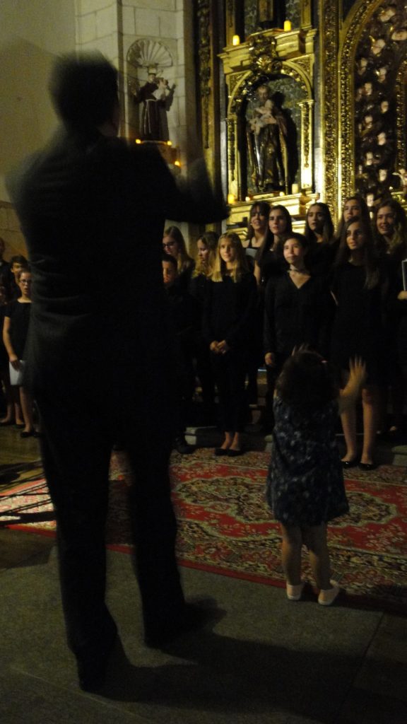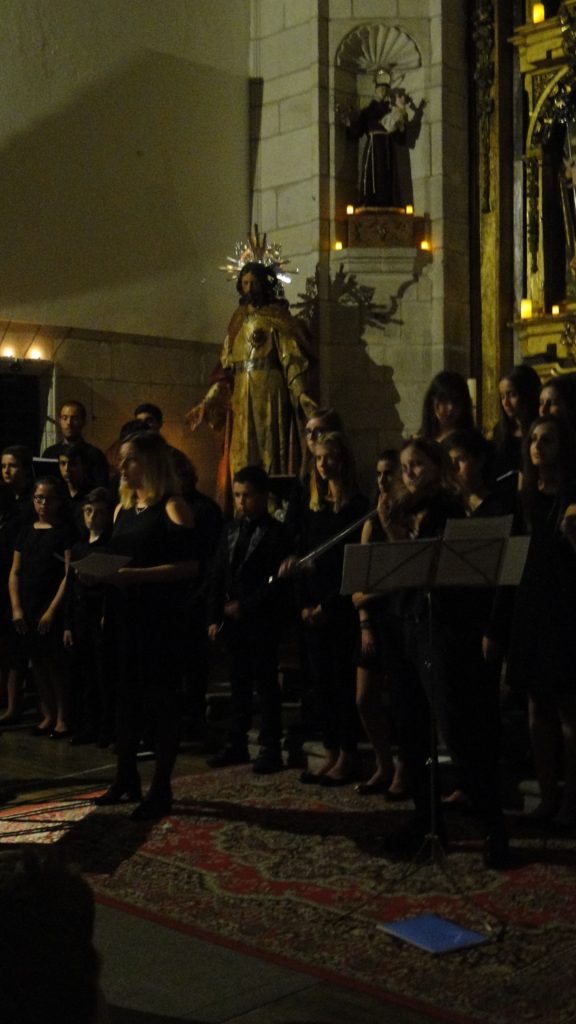 A seguir, unha desas cousas que só se lle poden ocorrer a Pablo Carballido: subir a Romeu, Jaime e Alex a cantar o trío dos xenios da ópera Die Zauberflöte (a frauta máxica) ao retablo da igrexa. Desde logo, era un bo sitio para proxectar a voz!