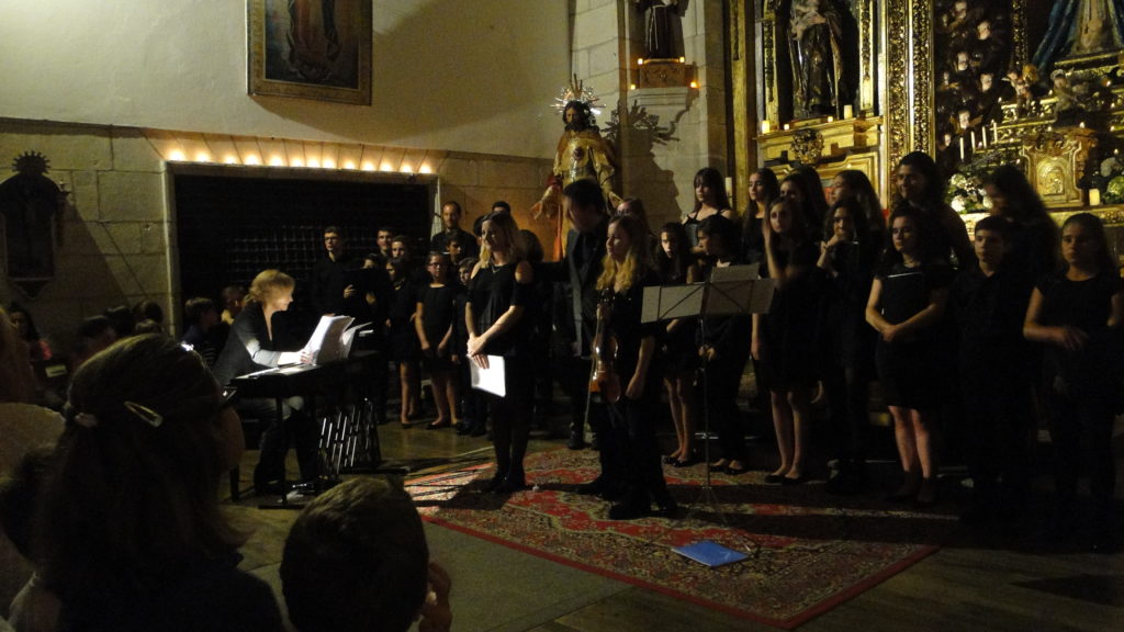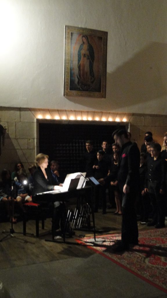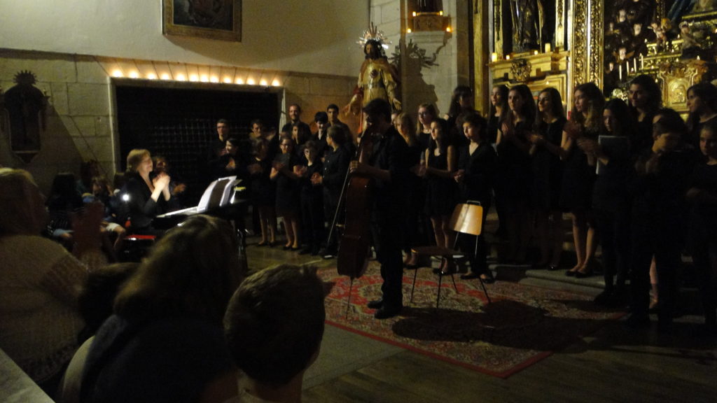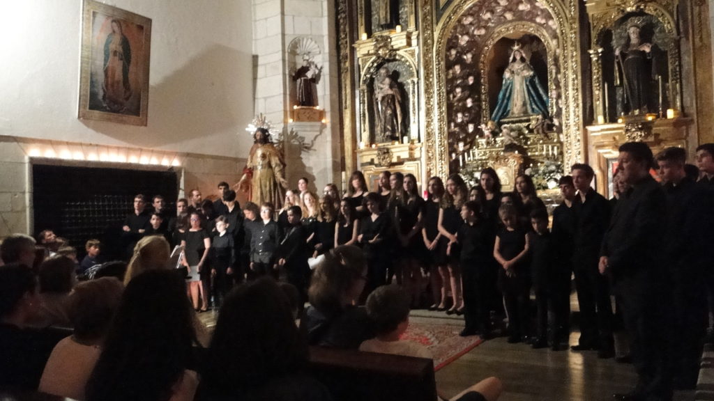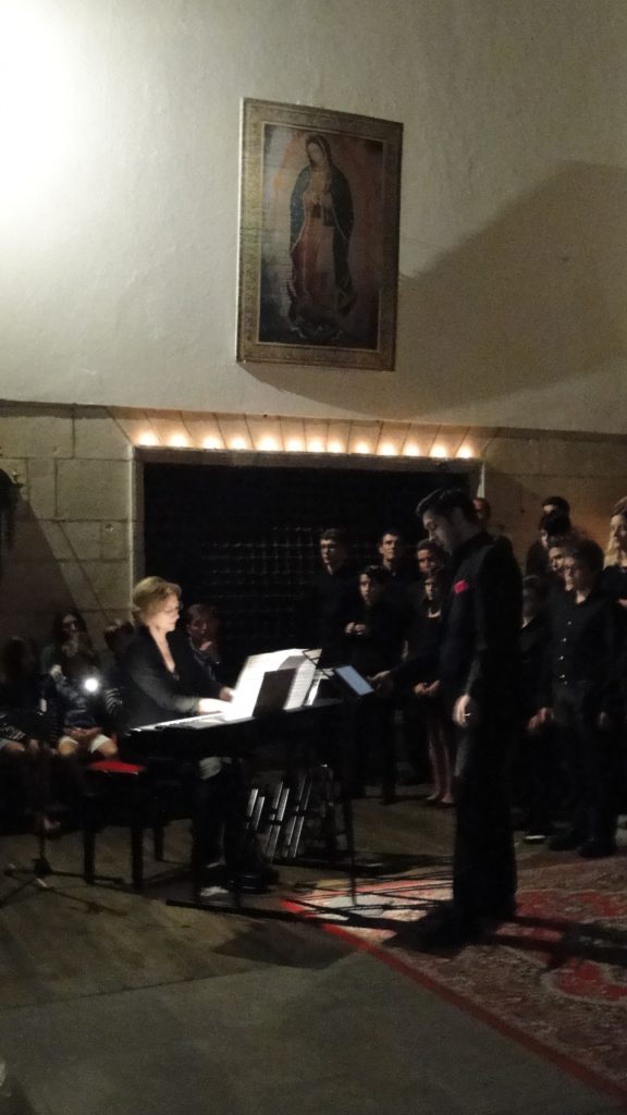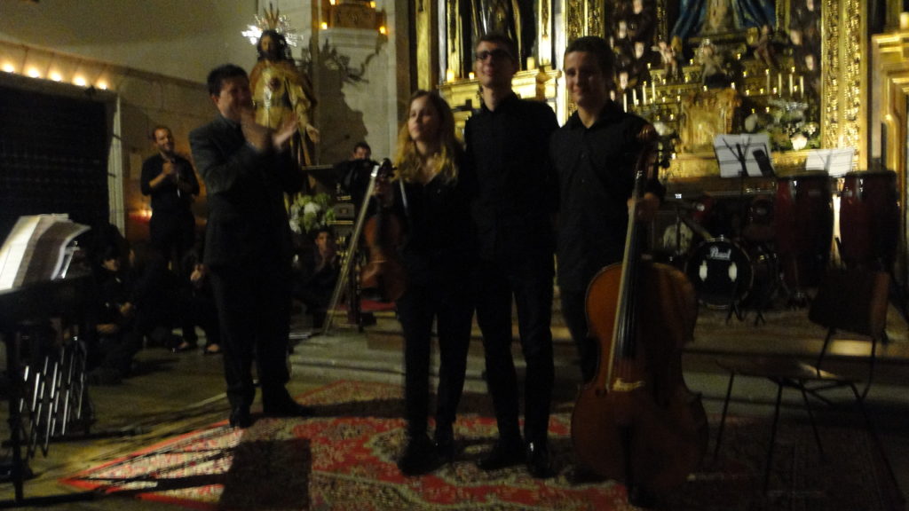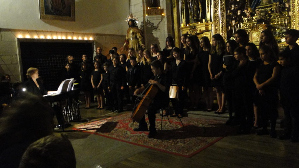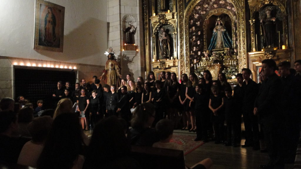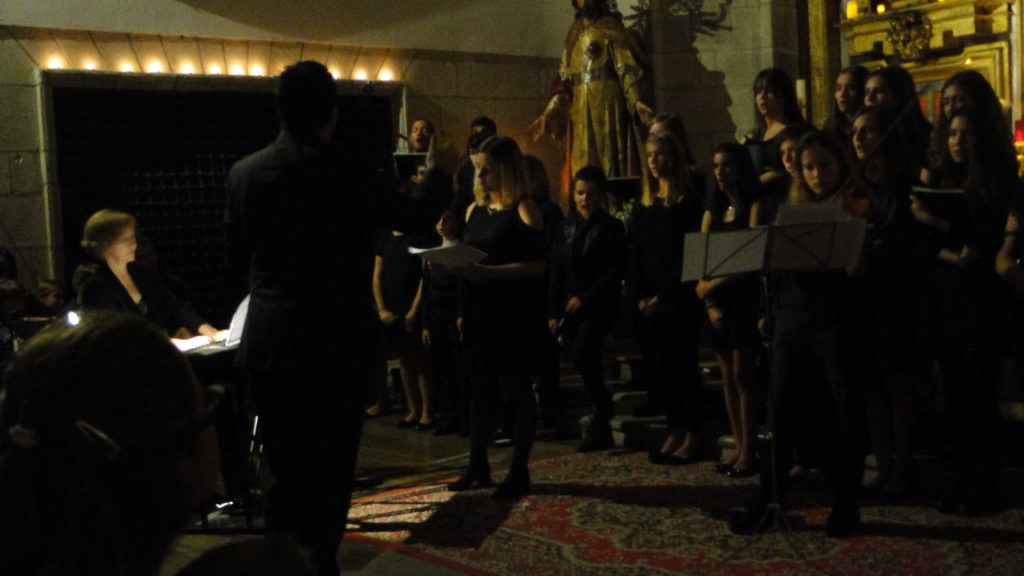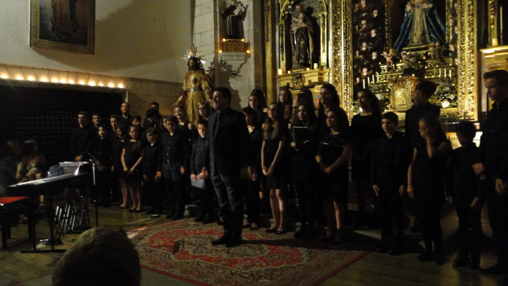 A seguir, unha desas cousas que só se lle poden ocorrer a Pablo Carballido: subir a Romeu, Jaime e Alex a cantar o trío dos xenios da ópera Die Zauberflöte (a frauta máxica) ao retablo da igrexa. Desde logo, era un bo sitio para proxectar a voz!