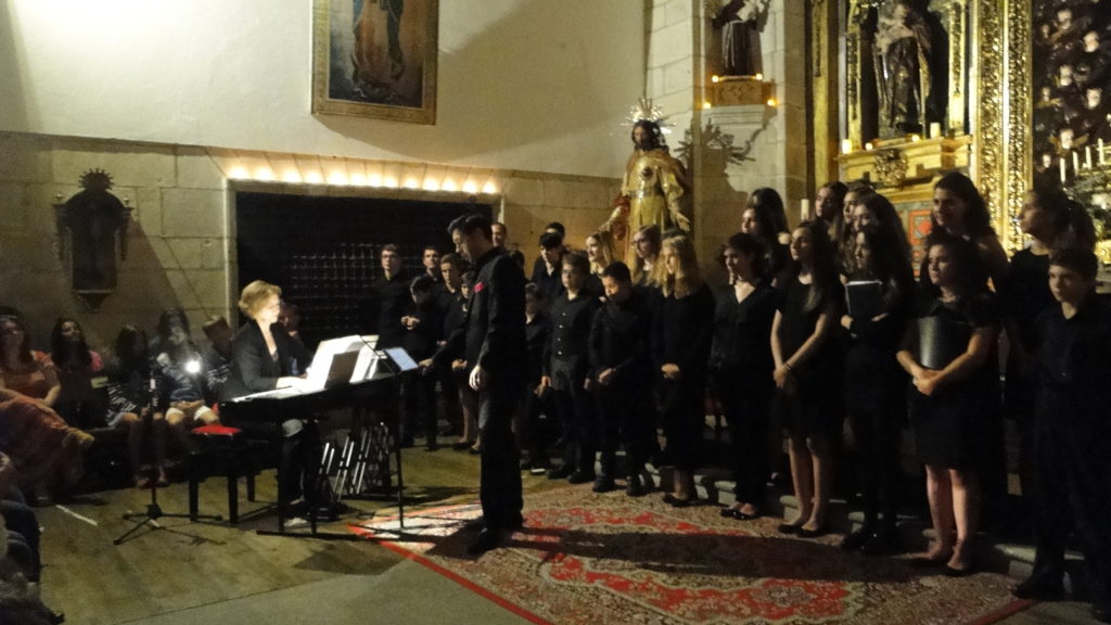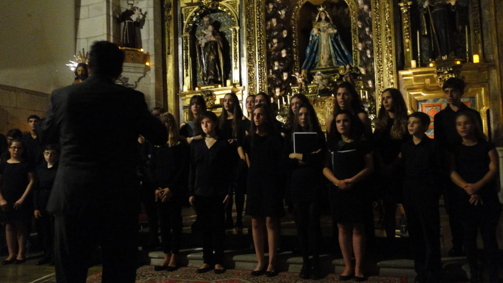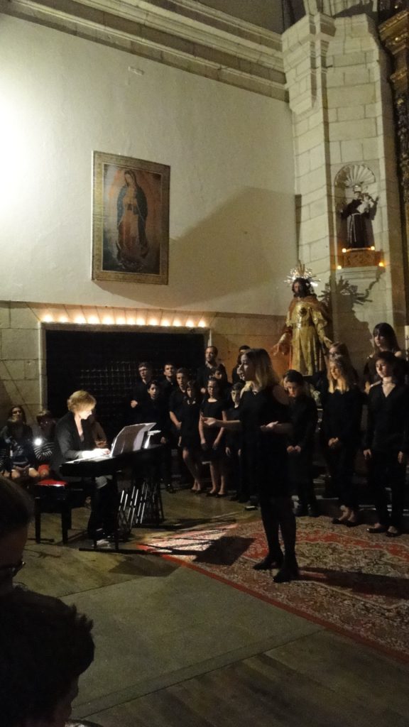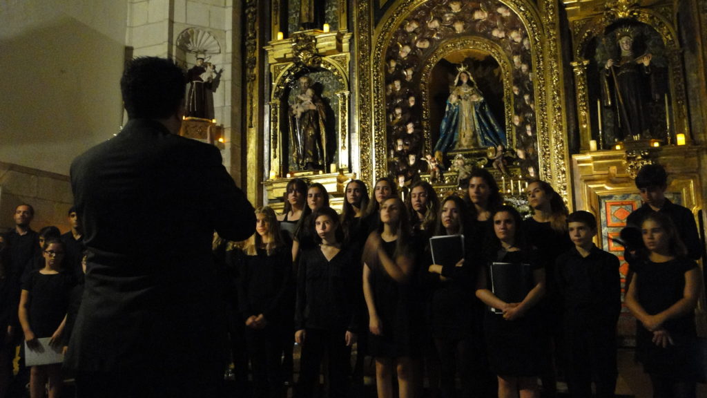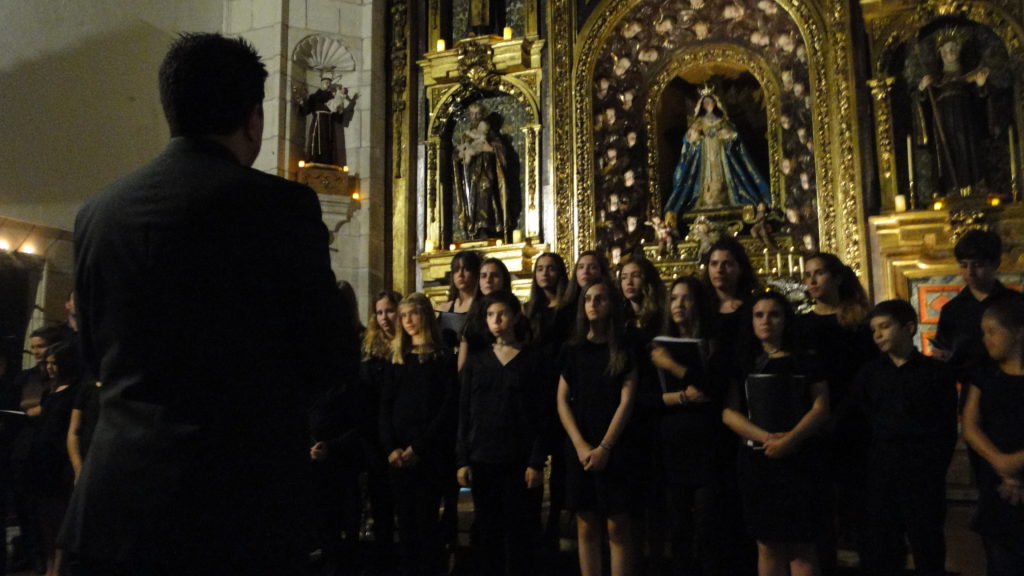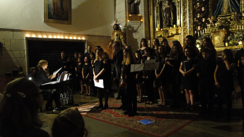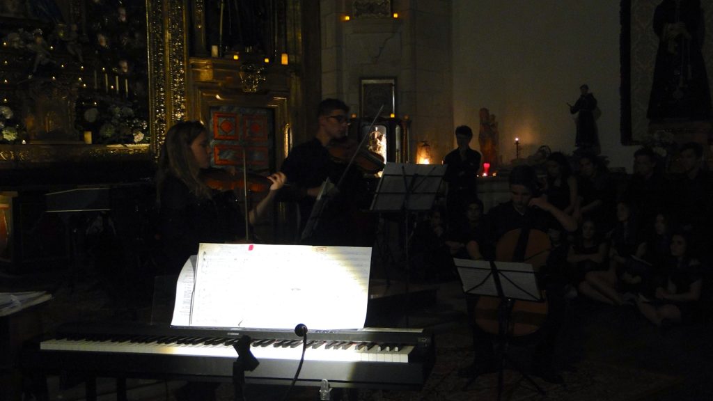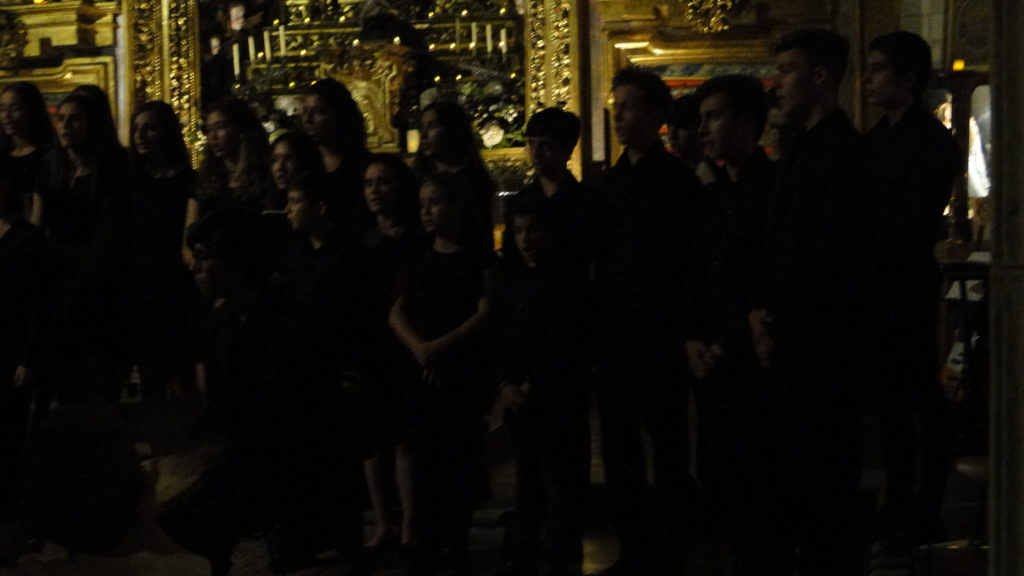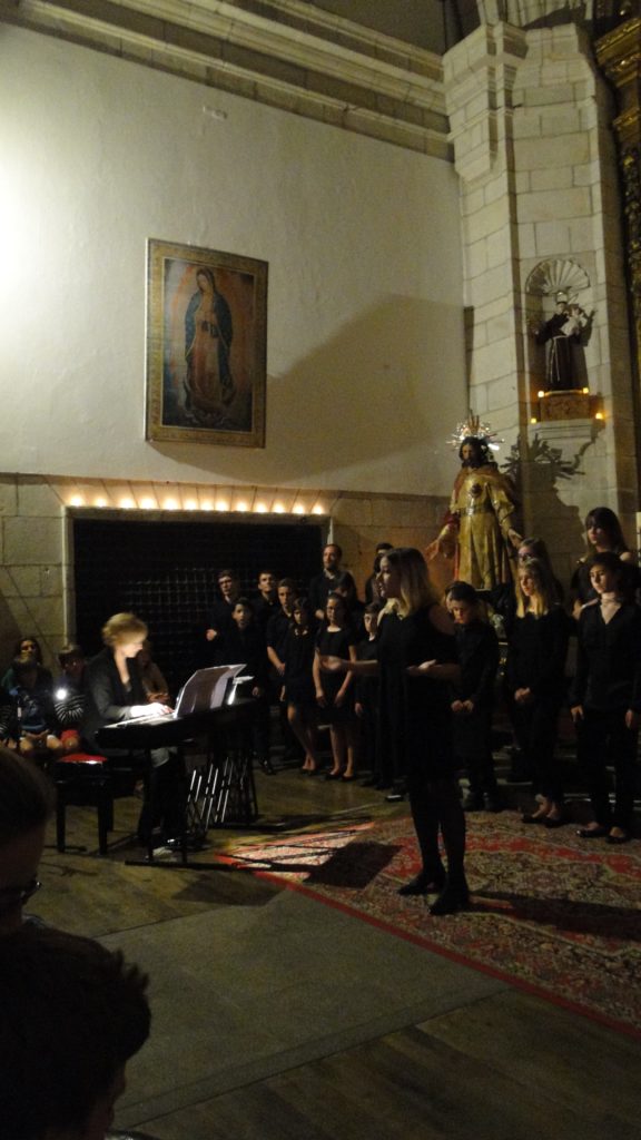 A seguir, unha desas cousas que só se lle poden ocorrer a Pablo Carballido: subir a Romeu, Jaime e Alex a cantar o trío dos xenios da ópera Die Zauberflöte (a frauta máxica) ao retablo da igrexa. Desde logo, era un bo sitio para proxectar a voz!