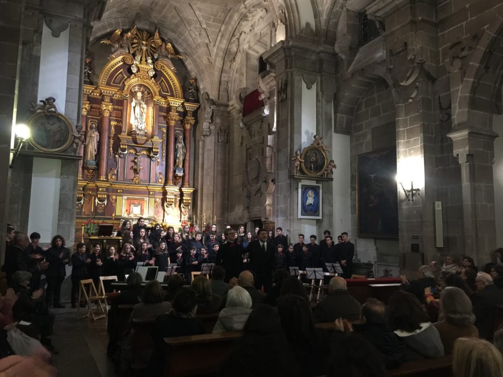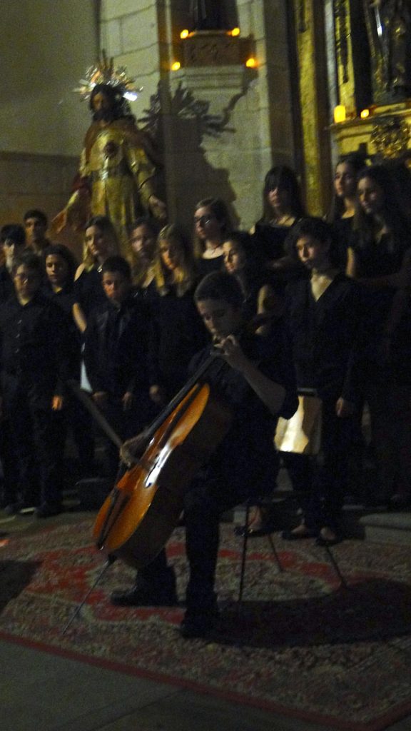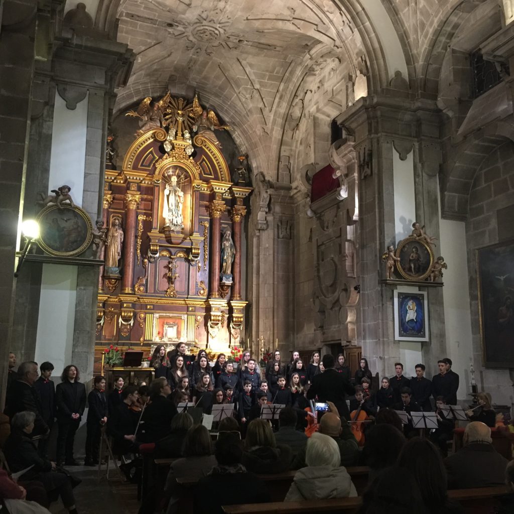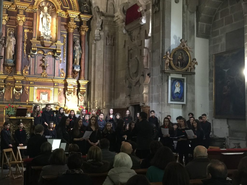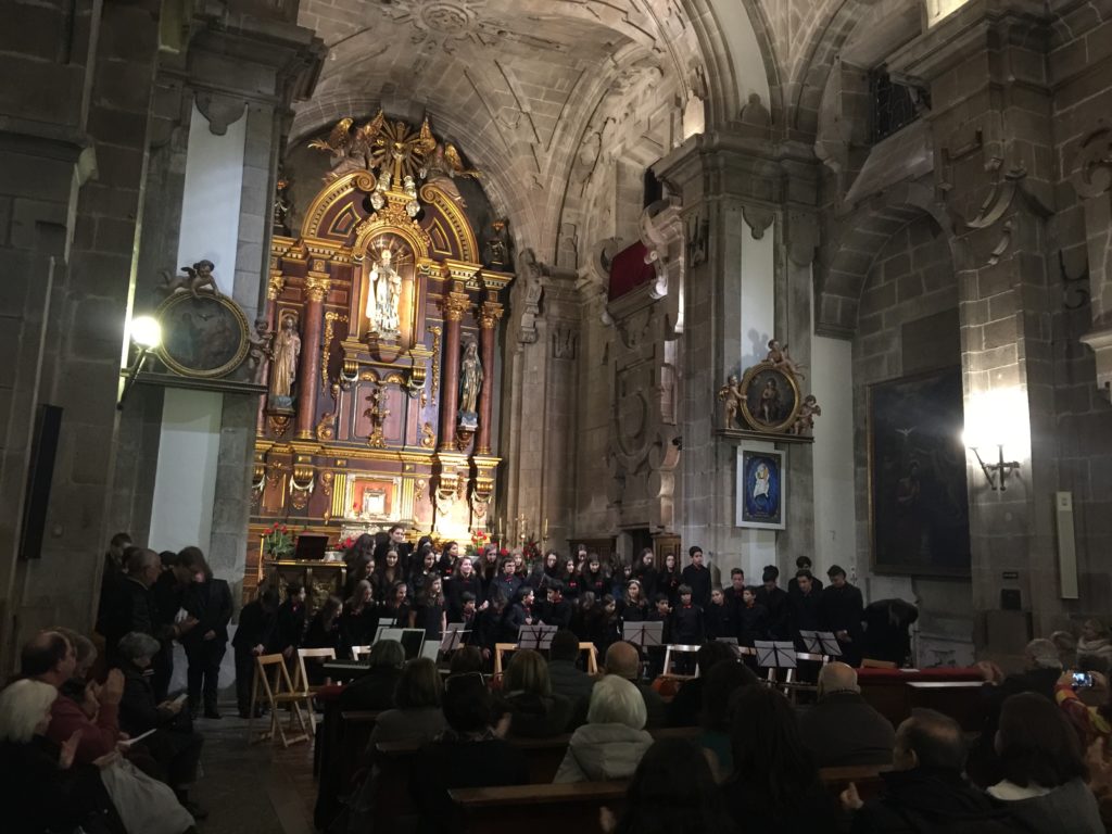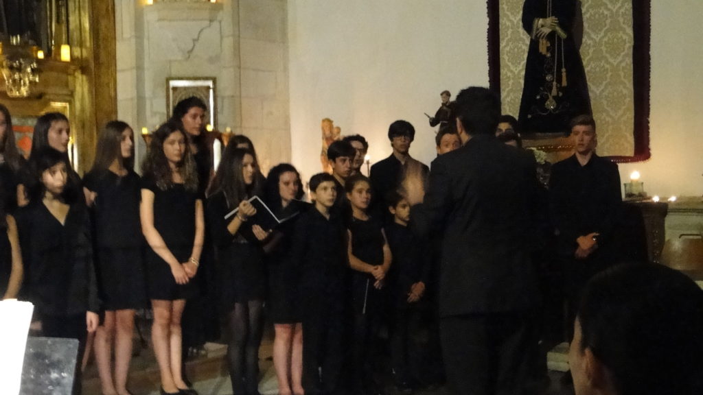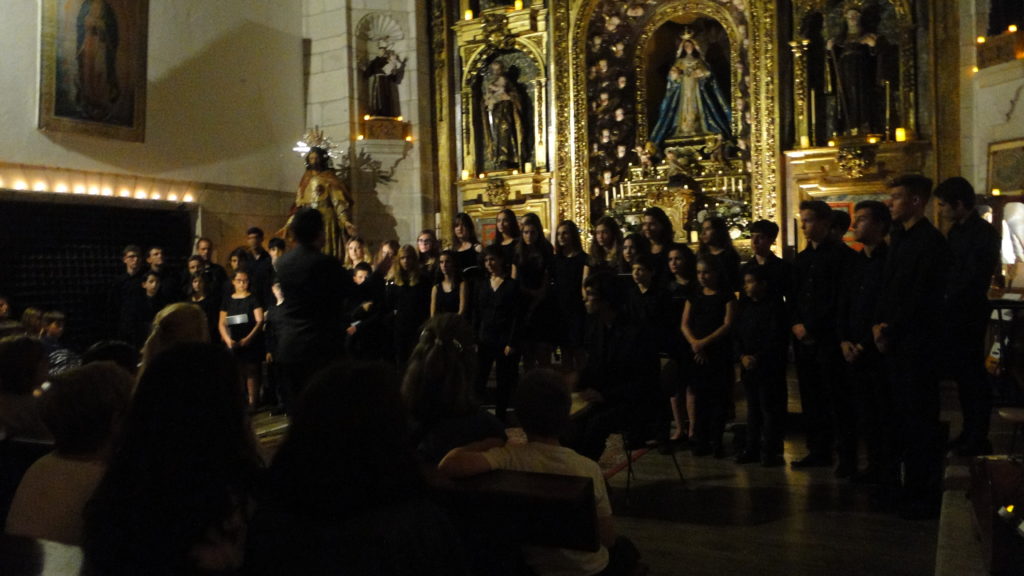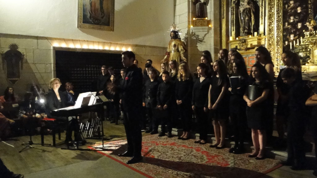 A seguir, unha desas cousas que só se lle poden ocorrer a Pablo Carballido: subir a Romeu, Jaime e Alex a cantar o trío dos xenios da ópera Die Zauberflöte (a frauta máxica) ao retablo da igrexa. Desde logo, era un bo sitio para proxectar a voz!