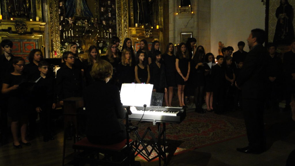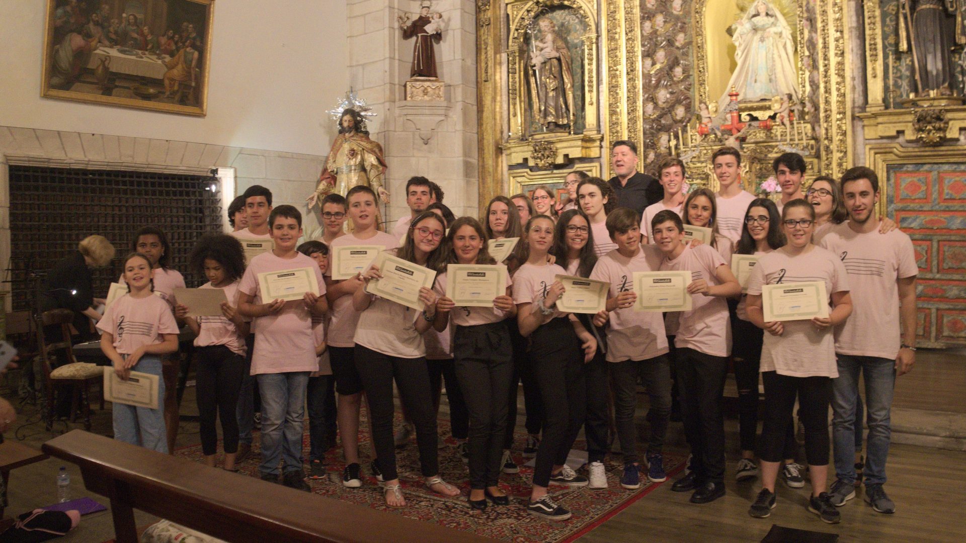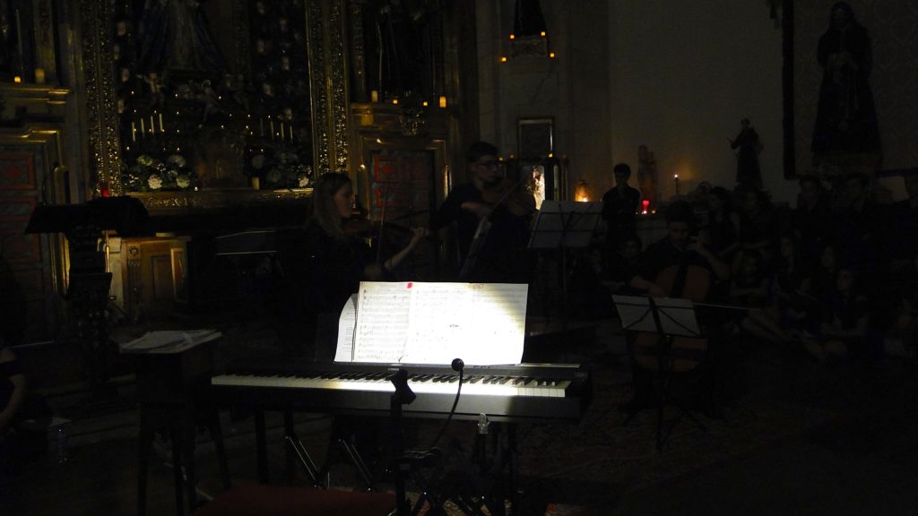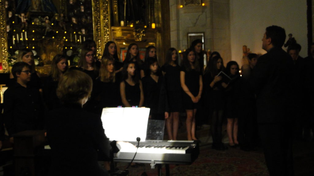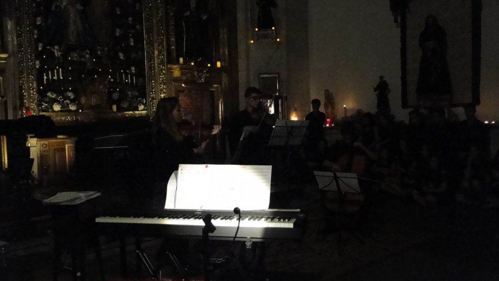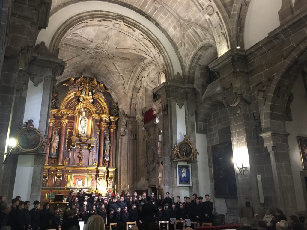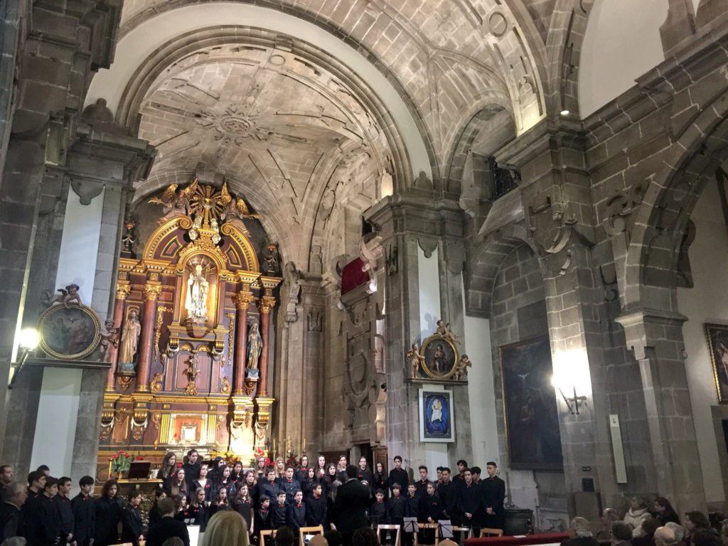 A seguir, unha desas cousas que só se lle poden ocorrer a Pablo Carballido: subir a Romeu, Jaime e Alex a cantar o trío dos xenios da ópera Die Zauberflöte (a frauta máxica) ao retablo da igrexa. Desde logo, era un bo sitio para proxectar a voz!
