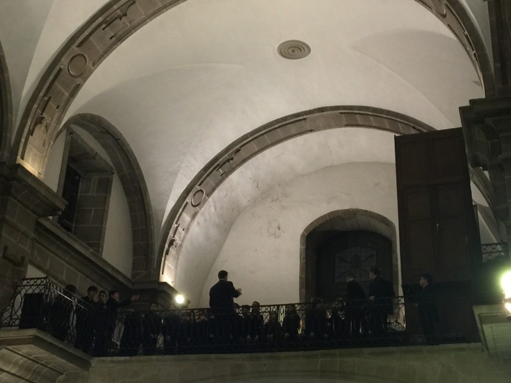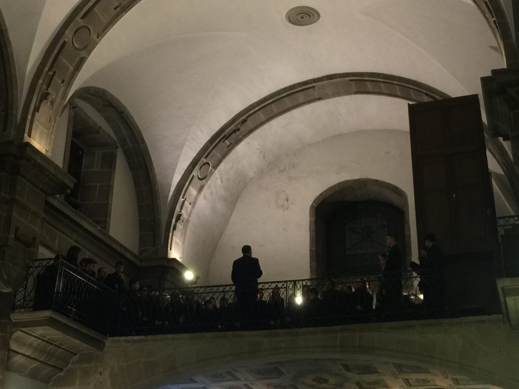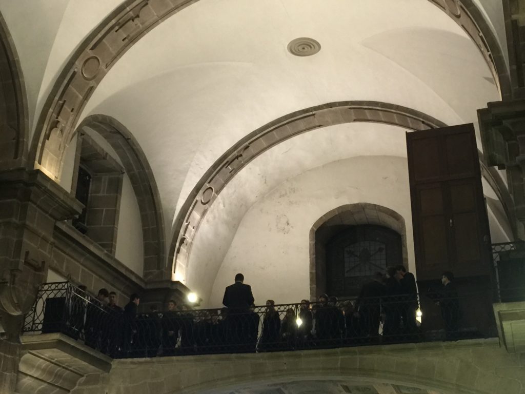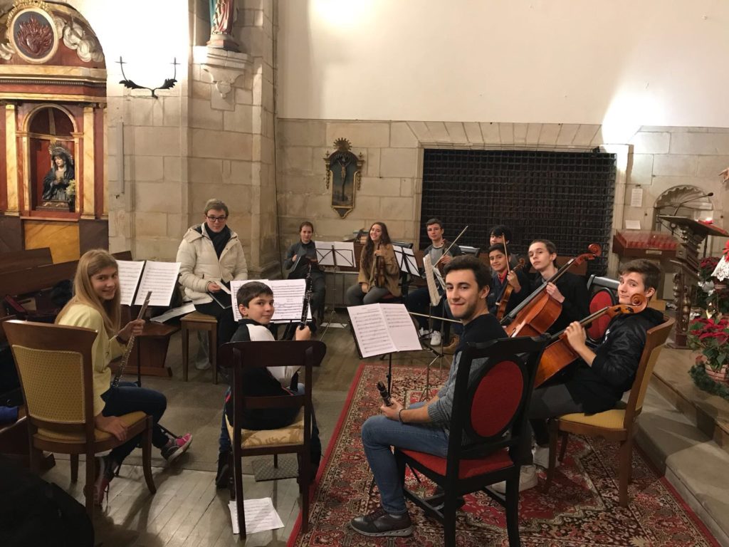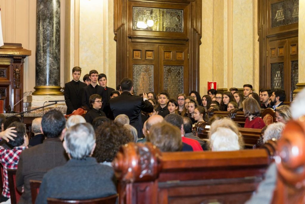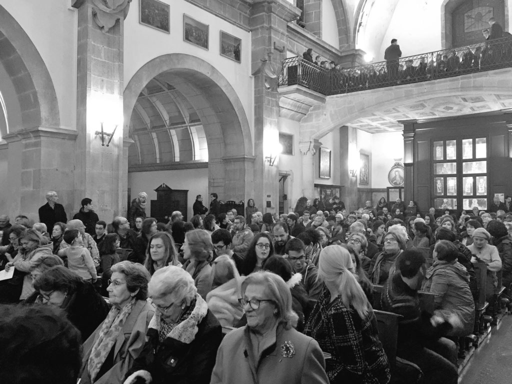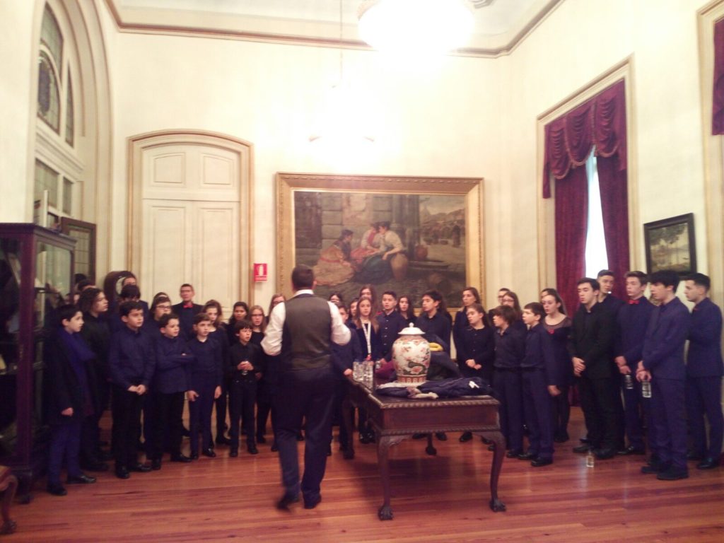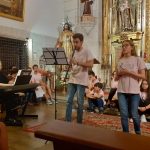 A seguir, unha desas cousas que só se lle poden ocorrer a Pablo Carballido: subir a Romeu, Jaime e Alex a cantar o trío dos xenios da ópera Die Zauberflöte (a frauta máxica) ao retablo da igrexa. Desde logo, era un bo sitio para proxectar a voz!
