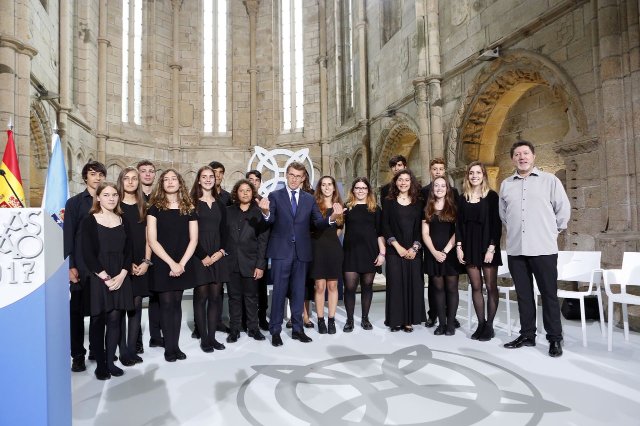 O Coro Cantabile e o seu director, Pablo Carballido, co presidente da Xunta de Galicia, Alberto Núñez Feijoo.