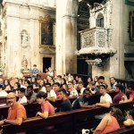 La foto lo dice todo. Una iglesia de las Capuchinas a rebosar. Gente que escuchó desde fuera. Y muchos, muchos aplausos. Ese es nuestro resumen de este primer concierto nocturno, de esta  “Noite das candeas con Cantabile