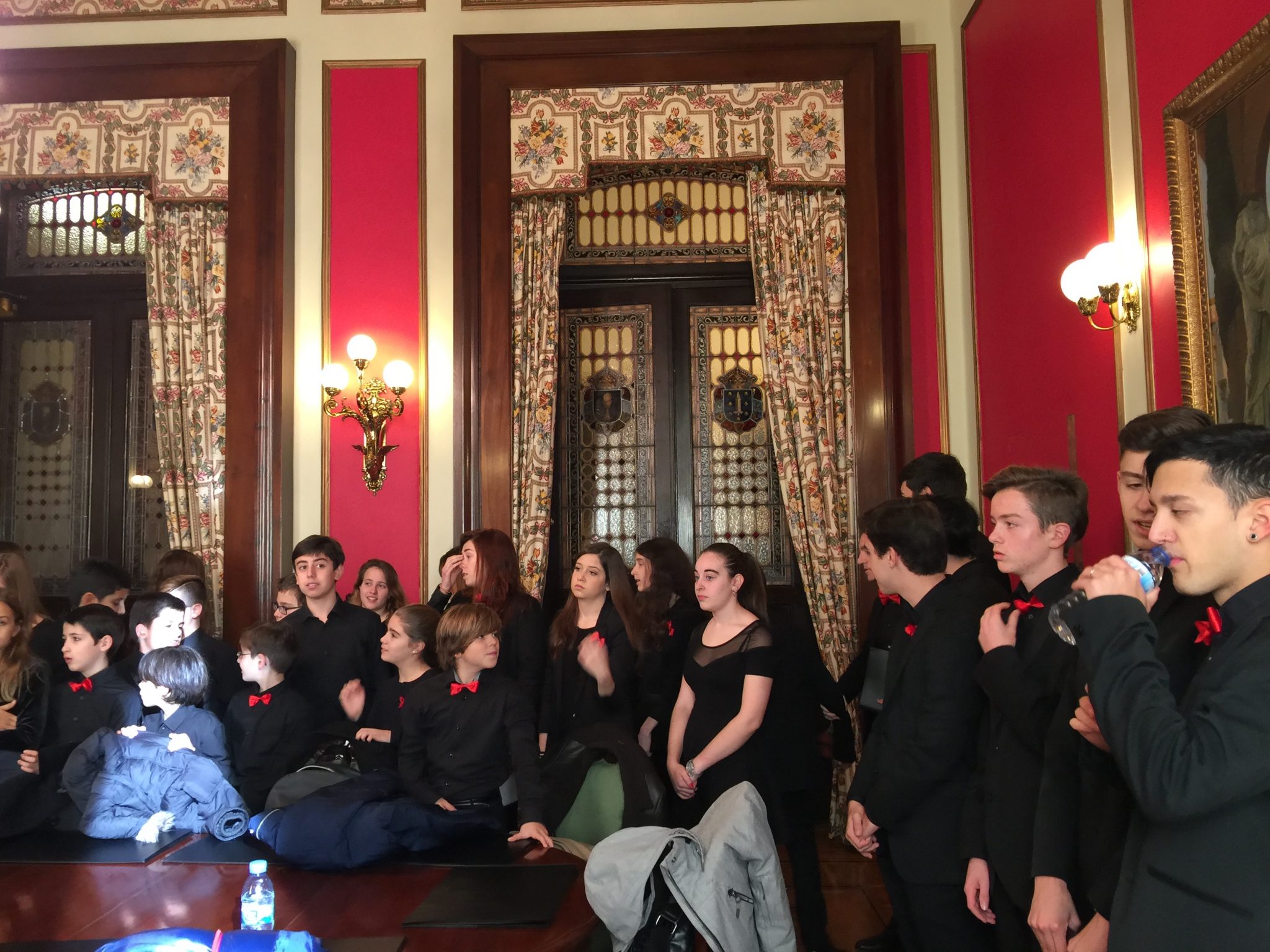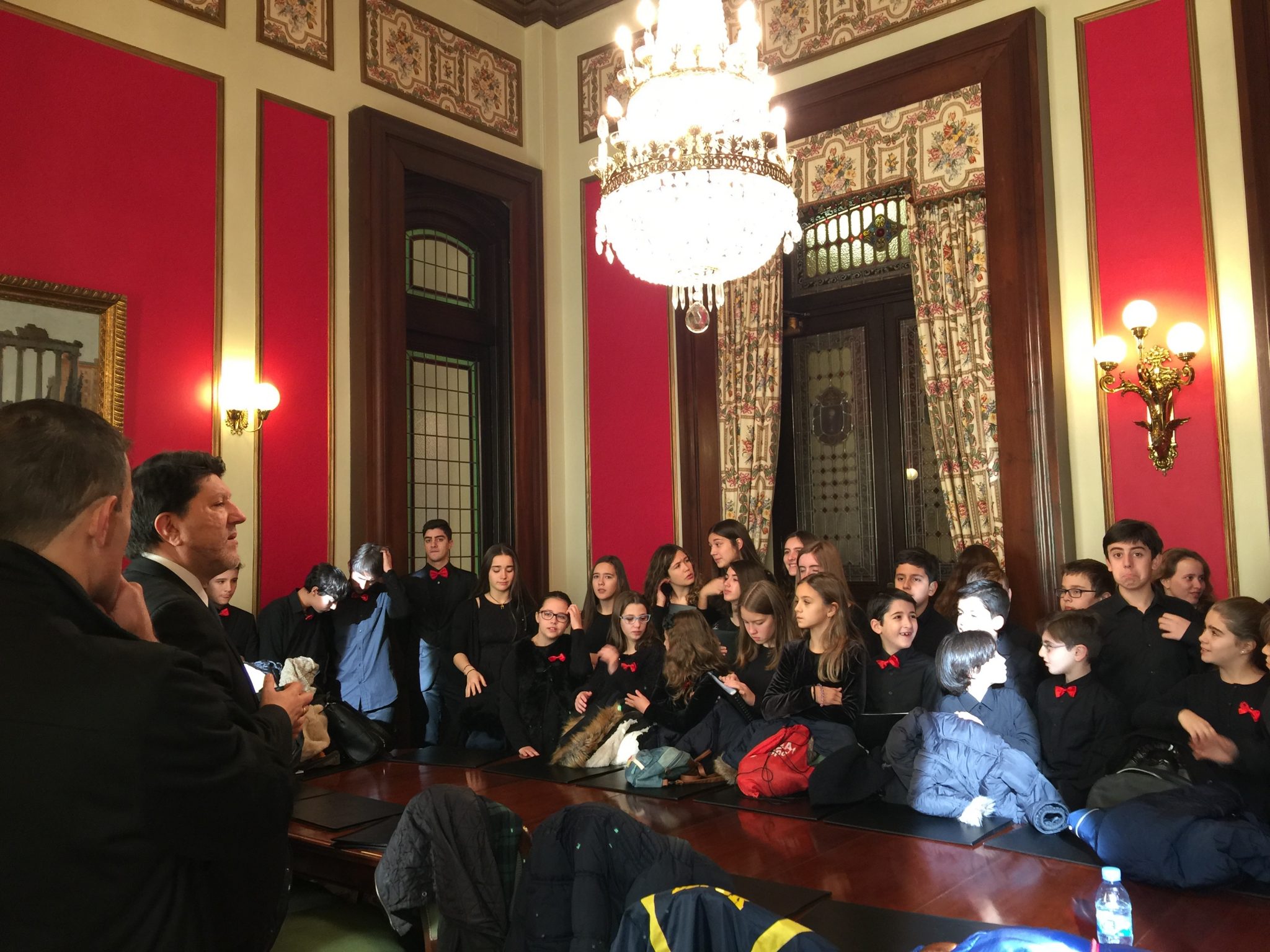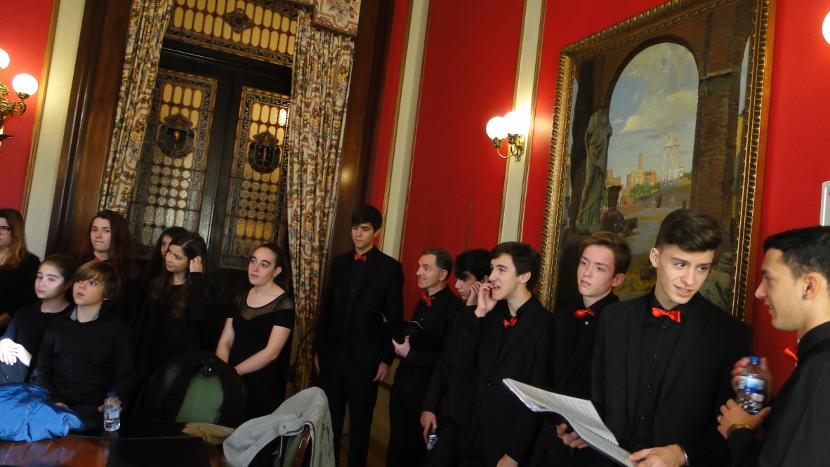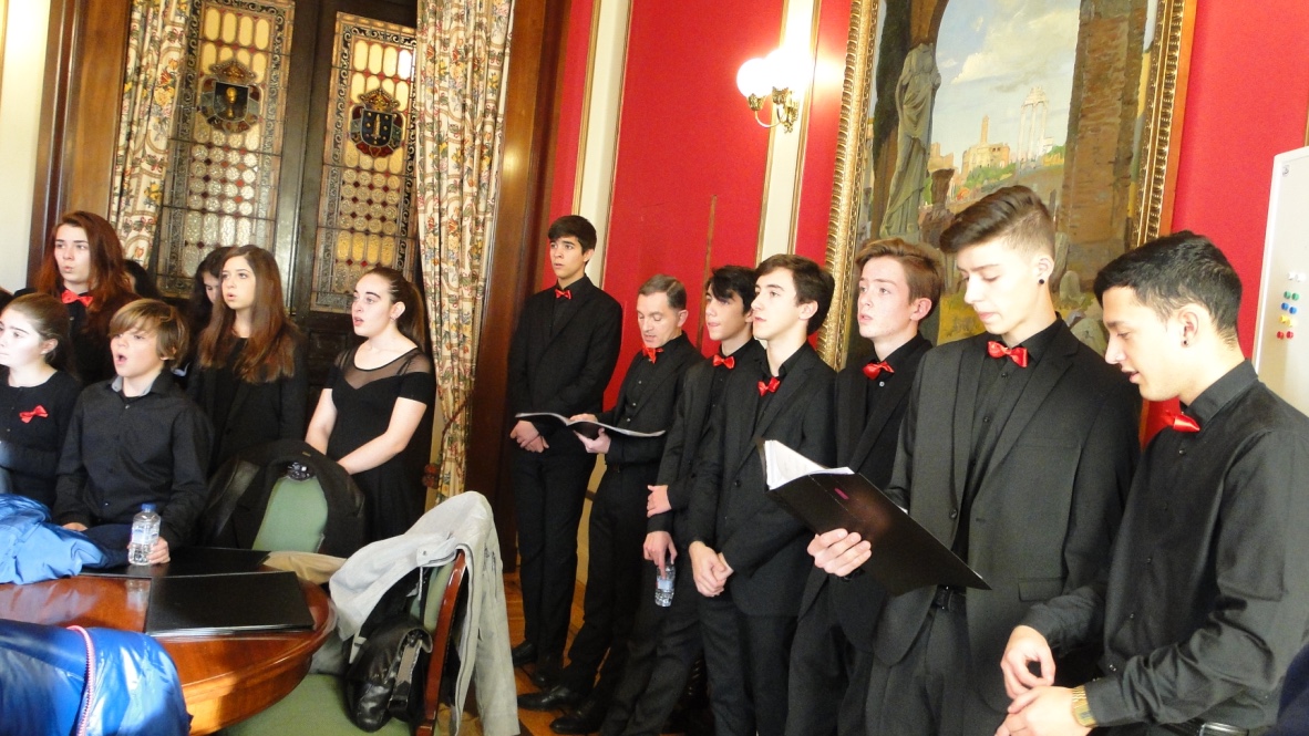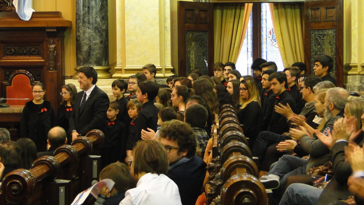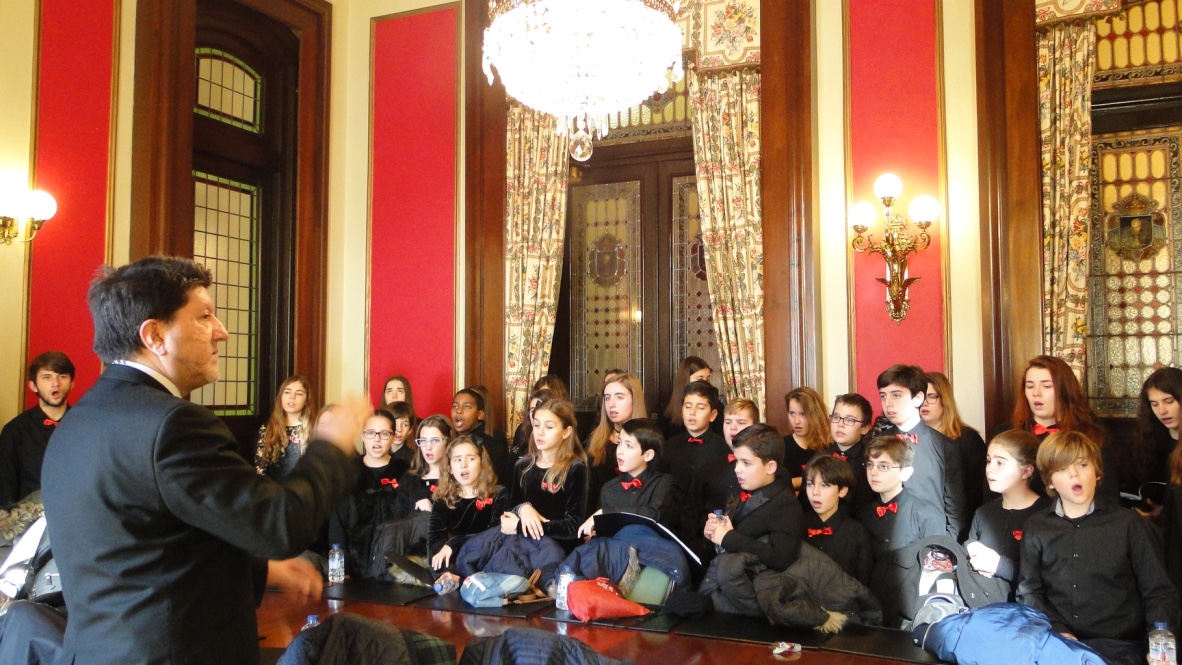 Comezabamos a xornada poñendo música á recepción aberta no palacio municipal de María Pita que realizou o Concello da Coruña con motivo das festas de Nadal. Despois do discurso do alcalde, Xulio Ferreiro, interpretamos algunhas panxoliñas que xa formaran parte do programa do concerto de Nadal do pasado día 28 en San Nicolás, unha cita xa tradicional dentro da nosa axenda que compartimos cun templo repleto de público.