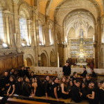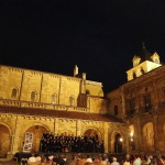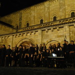Han sido dos eventos que nos han hecho disfrutar mucho y esperamos que al público también. Primero cantamos en la Basílica de la Real Colegiata de San Isidoro en la misa de las 21.00 acompañados por Alberto Miguélez tocando el órgano de la Basílica que muy amablemente pusieron a nuestra disposición. Y una vez terminada la misa, nos fuimos directamente al impresionante claustro de la Colegiata para dar nuestro concierto. Ha sido estupendo poder cantar ante el público de León en un concierto nocturno con la iluminación que llena el claustro de magia.