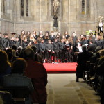 Han sido dos eventos que nos han hecho disfrutar mucho y esperamos que al público también. Primero cantamos en la Basílica de la Real Colegiata de San Isidoro en la misa de las 21.00 acompañados por Alberto Miguélez tocando el órgano de la Basílica que muy amablemente pusieron a nuestra disposición. Y una vez terminada la misa, nos fuimos directamente al impresionante claustro de la Colegiata para dar nuestro concierto. Ha sido estupendo poder cantar ante el público de León en un concierto nocturno con la iluminación que llena el claustro de magia.