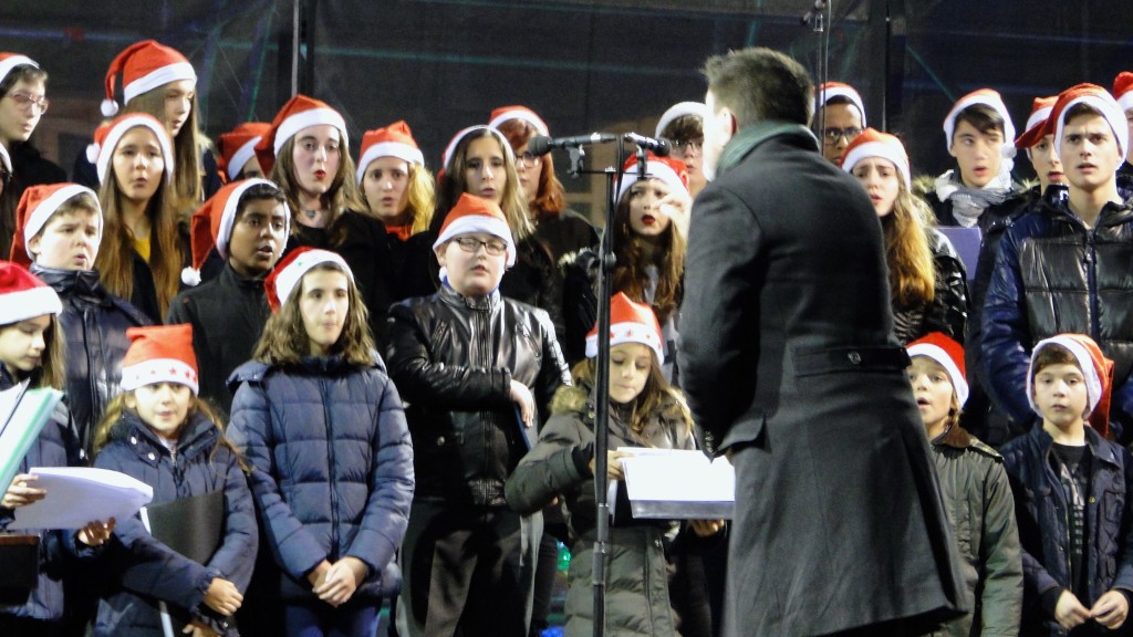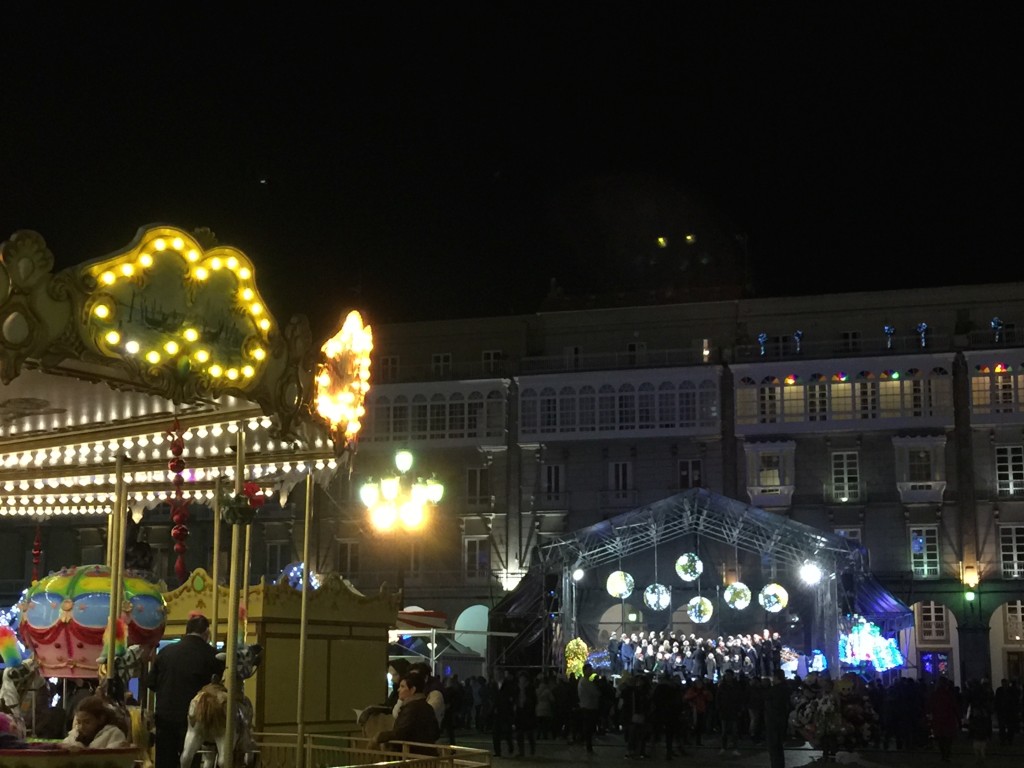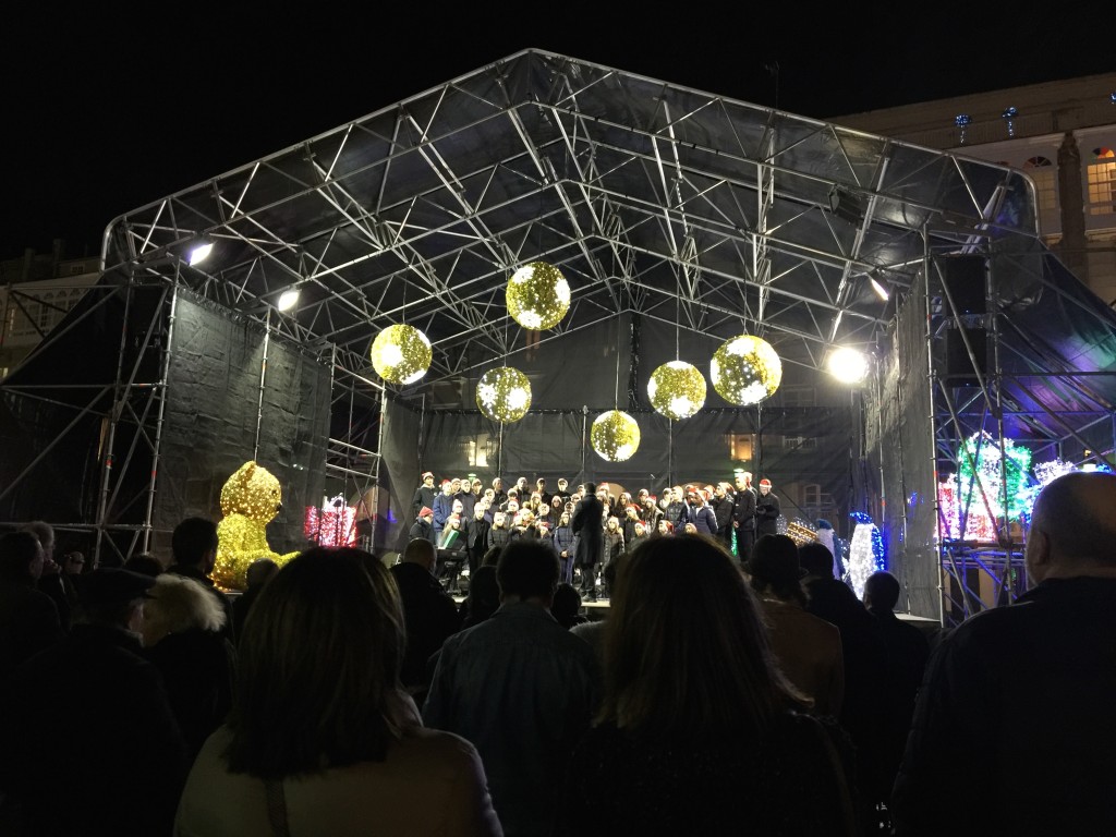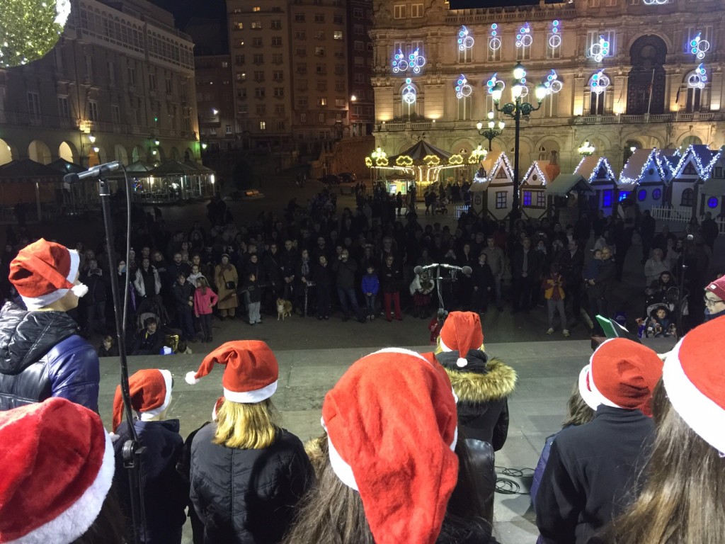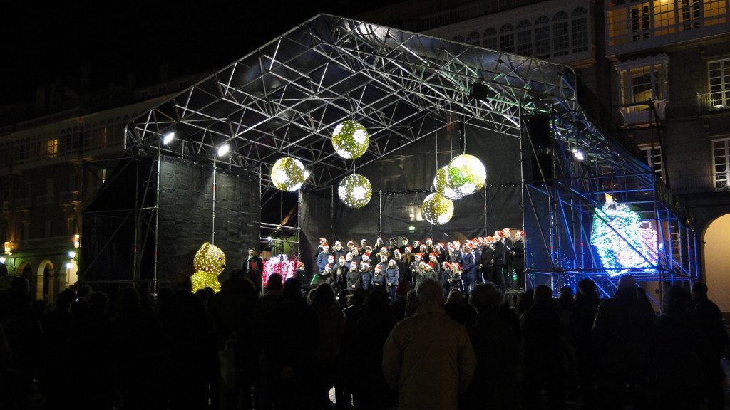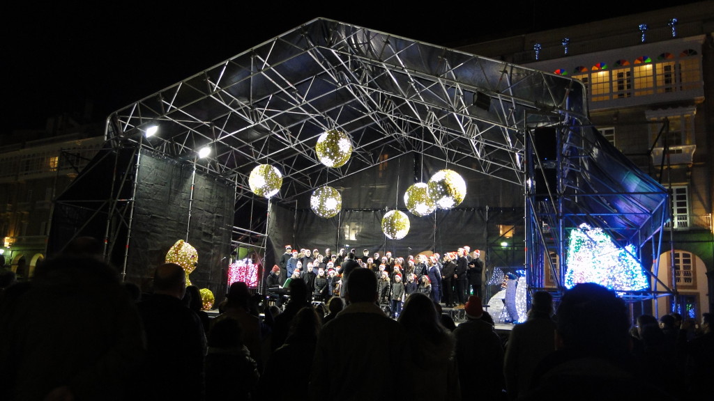 E comezou moi pronto. Unha das novidades deste nadal foi a participación do Coro, o 7 de decembro, no prendido da iluminación de nadal, cun concerto xunto á famosa bóla da Marina, ateigada de xente.