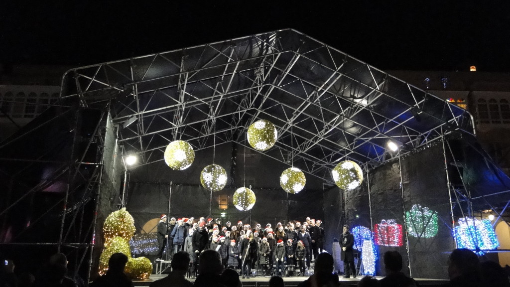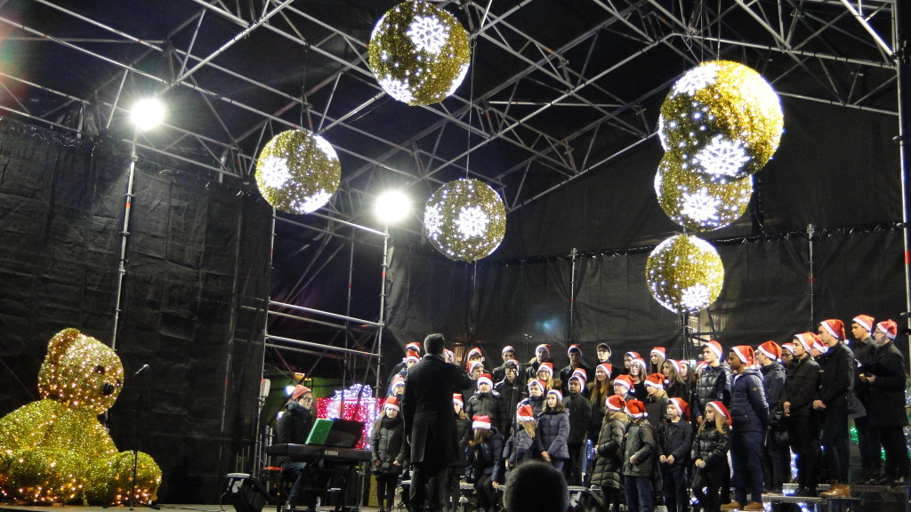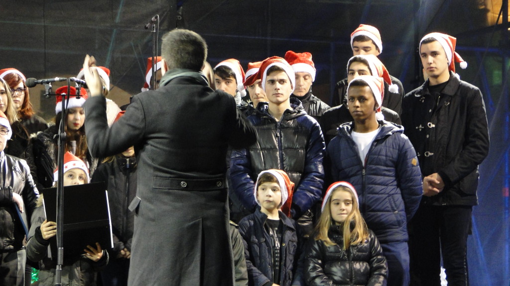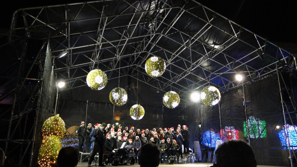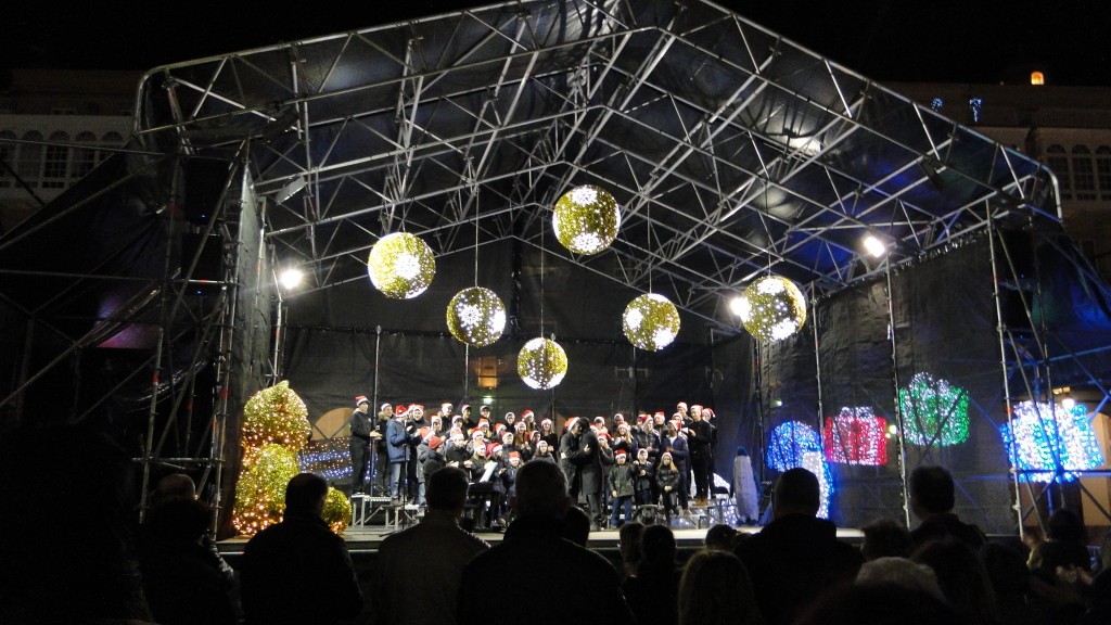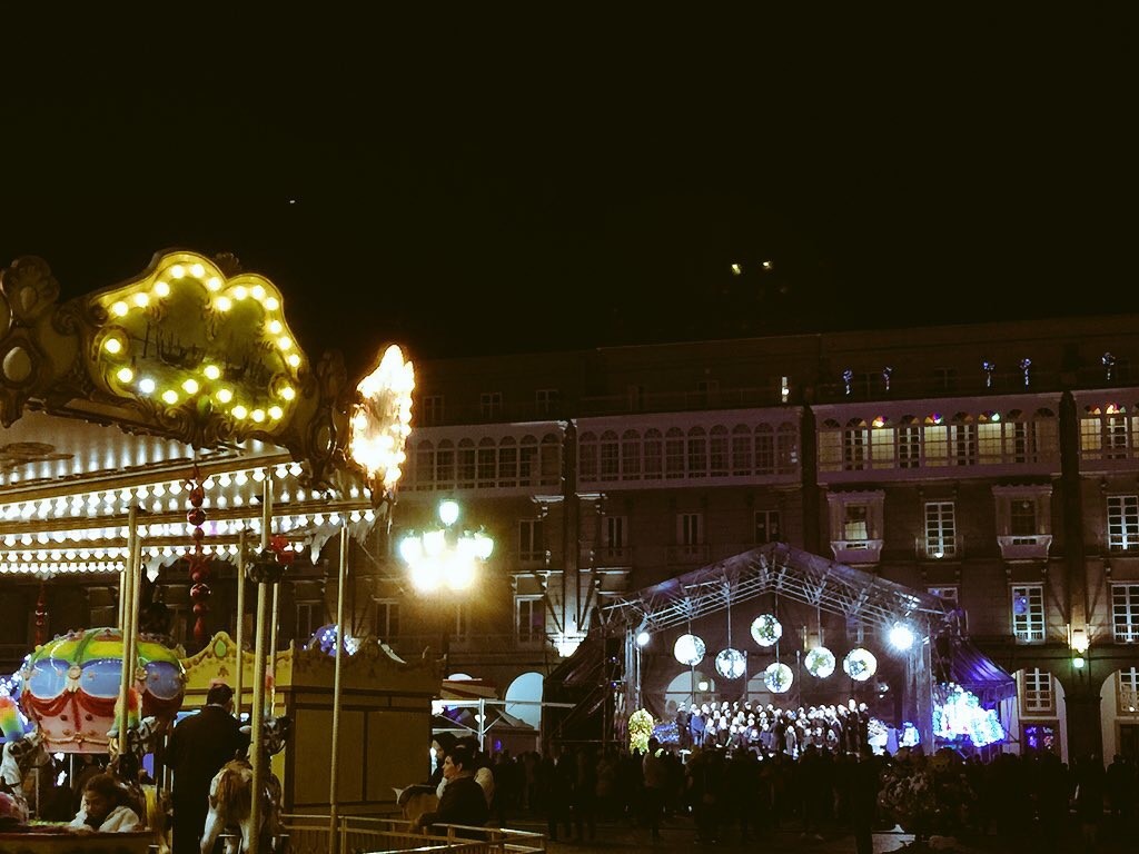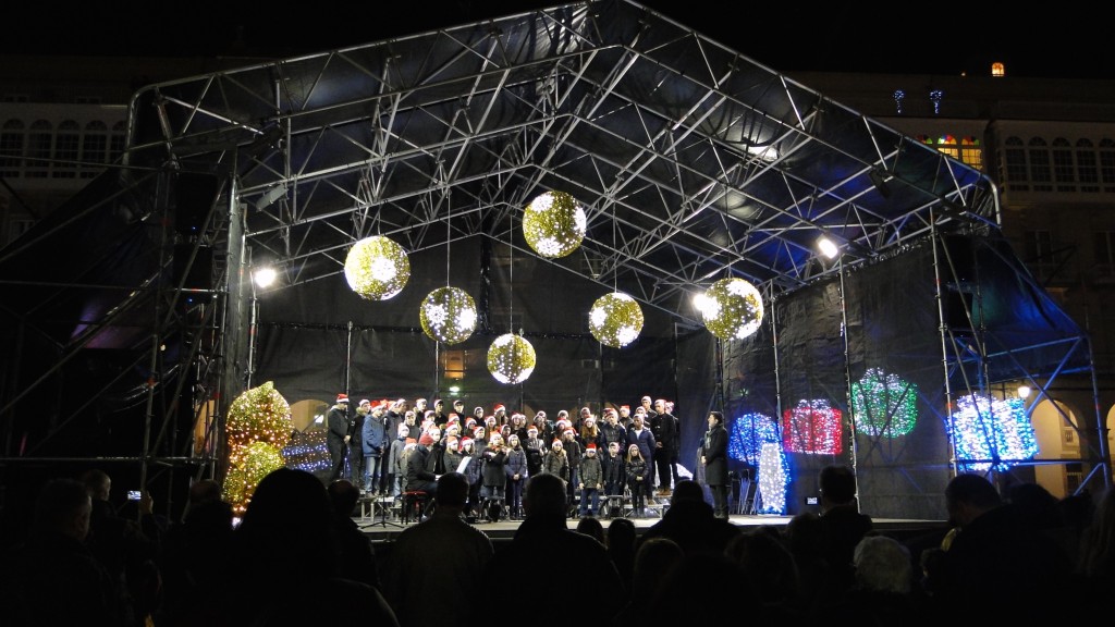 E comezou moi pronto. Unha das novidades deste nadal foi a participación do Coro, o 7 de decembro, no prendido da iluminación de nadal, cun concerto xunto á famosa bóla da Marina, ateigada de xente.