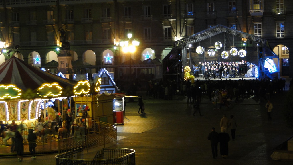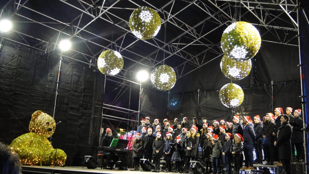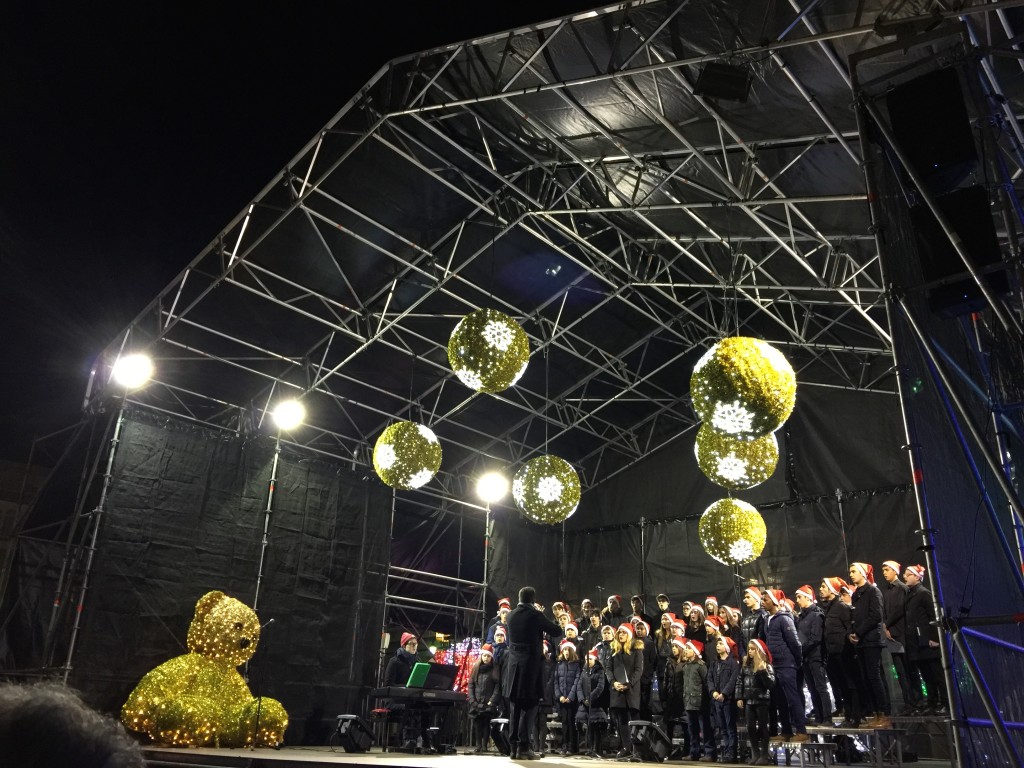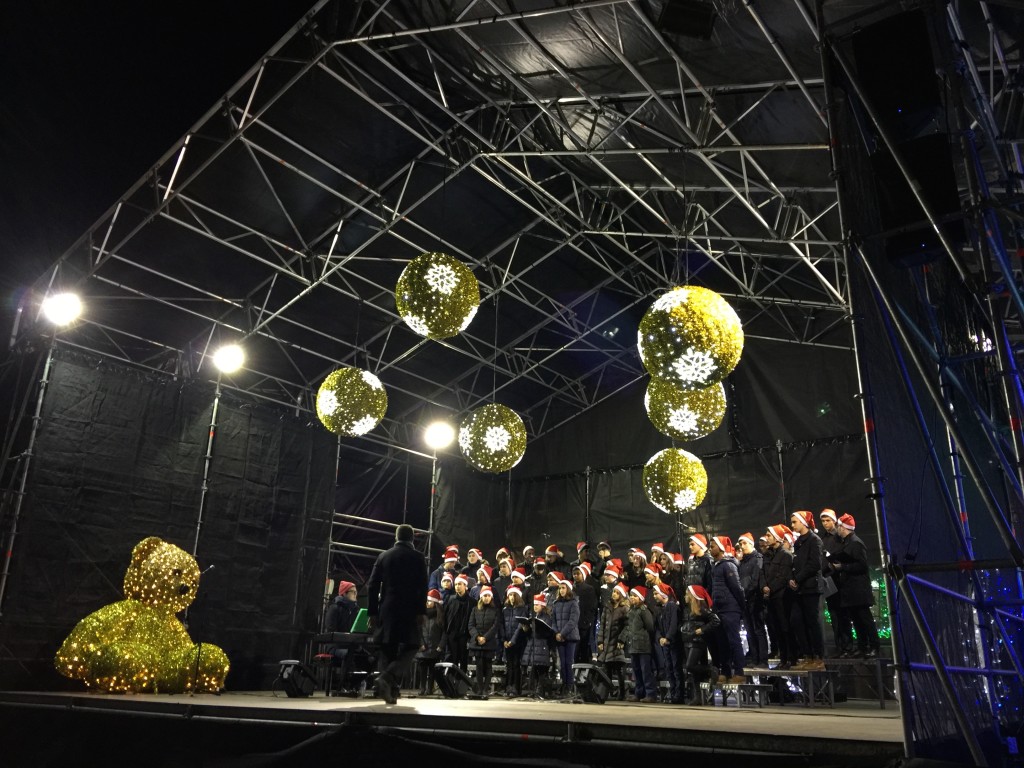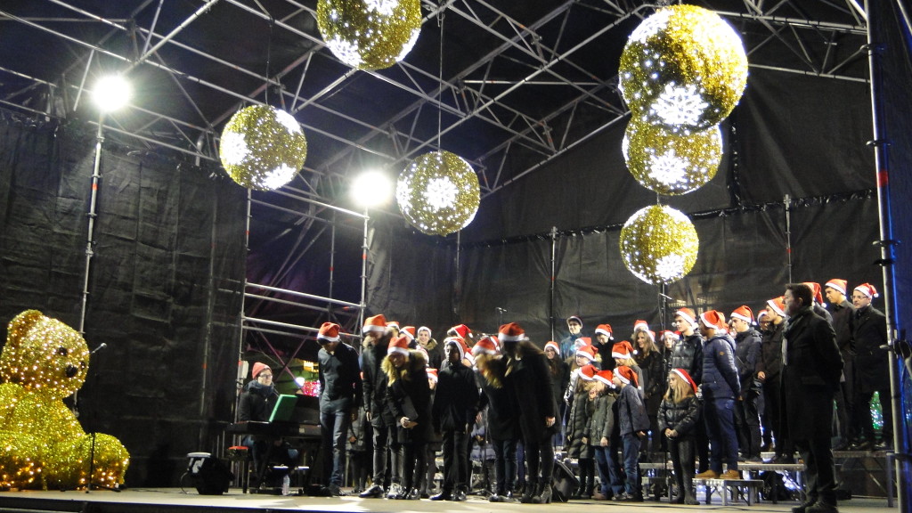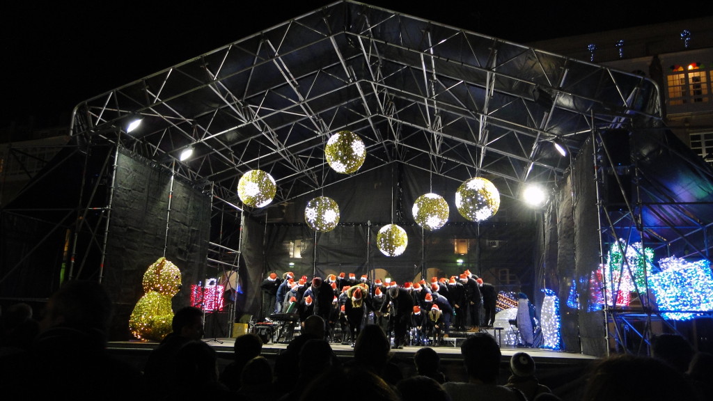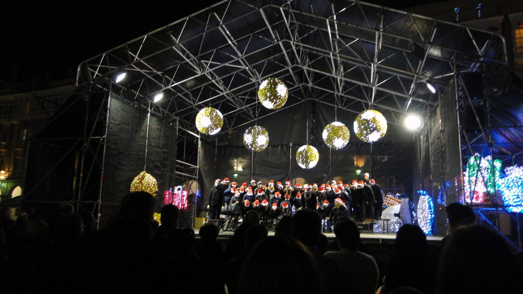 E comezou moi pronto. Unha das novidades deste nadal foi a participación do Coro, o 7 de decembro, no prendido da iluminación de nadal, cun concerto xunto á famosa bóla da Marina, ateigada de xente.